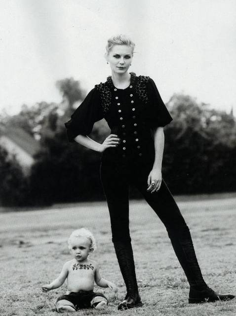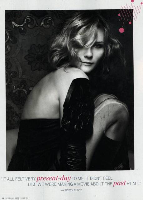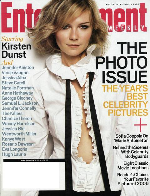 Call me crazy but Kiki is quickly becoming my GP #2…. Cannot.Get.Enough. Why? 1. Kiki doesn’t want to be my friend. She doesn’t want to be your friend. She wants to scowl, she has no interest in giving a public relations blow job, and as you know, I like detachment much more than I like desperation. 2. Kiki makes interesting movies and when she doesn’t make interesting movies it’s because Three Whiskers makes them NOT interesting. Yes, that INCLUDES Bring it On. Brrrr…it’s cold in here, there must be some Toros in the atmosphere! 3. Kiki’s father isn’t her player pimp. But most importantly… 4. It’s Kiki style, her style. Kiki is chic unique. Kiki never looks “nice” – nice is for sleeping. Nice is for your Grade 5 teacher , the one who always gave you her sandwich when your dad thought sardines were a good option for elementary school. Nice however is not for the red carpet or for a young woman in her 20s known as Coppola’s constant muse. Kiki is not nice. Kiki is fierce. When she wears a little black dress, it’s a little black dress with attitude. And thank Goddess she has no boobs. I heart no boobs. So take a look at a few photos from her new Entertainment Weekly spread. No wind machine, not a speck of sand, no heaving cleave, no lips around an imaginary cock – just Kirsten Dunst…sexy, different, unconventional… Love, Love, Love. Photo source
