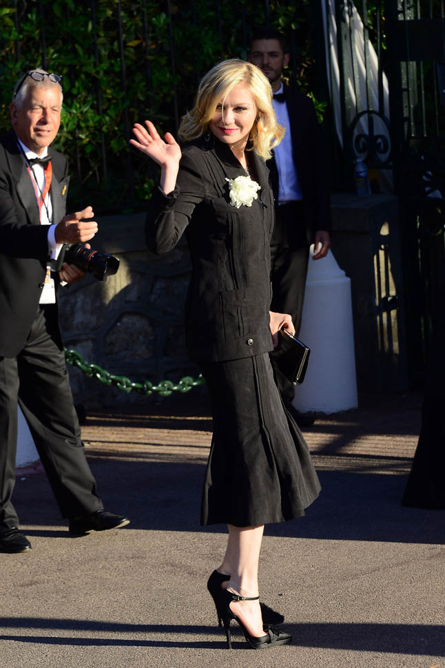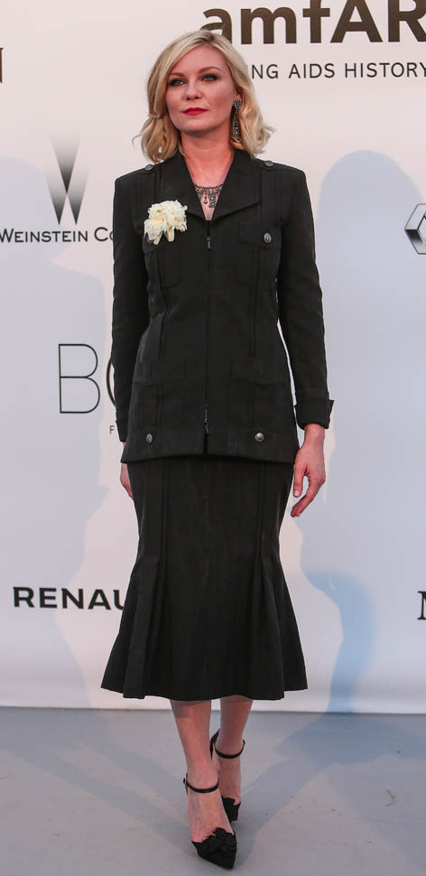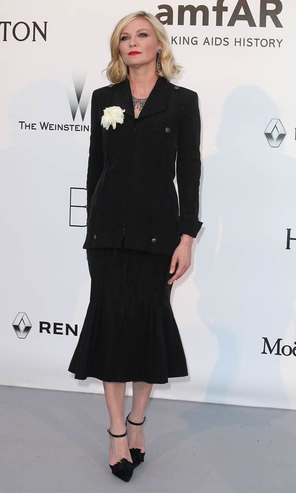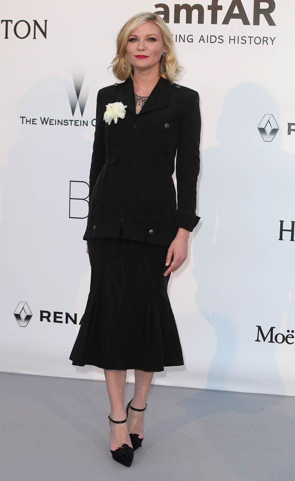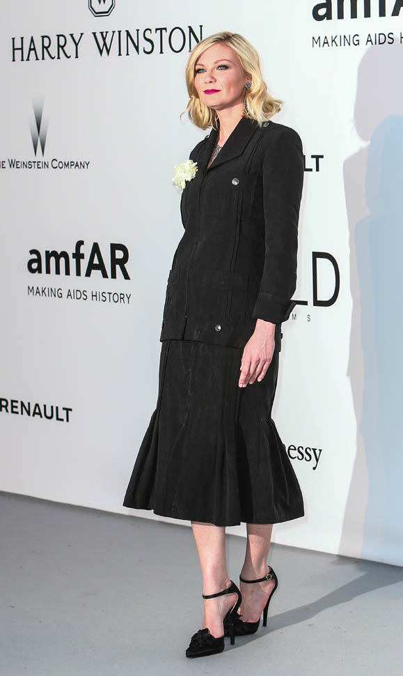 Almost everyone else at amfAR last night went for skin and sequins. Kiki chose a beautifully tailored jacket over a flared skirt and a statement necklace and, well, it doesn’t scream “gala” but at that event, I feel like she was making a point of leaving that to the models. I love the silhouette on her. And I love these f-cking shoes.