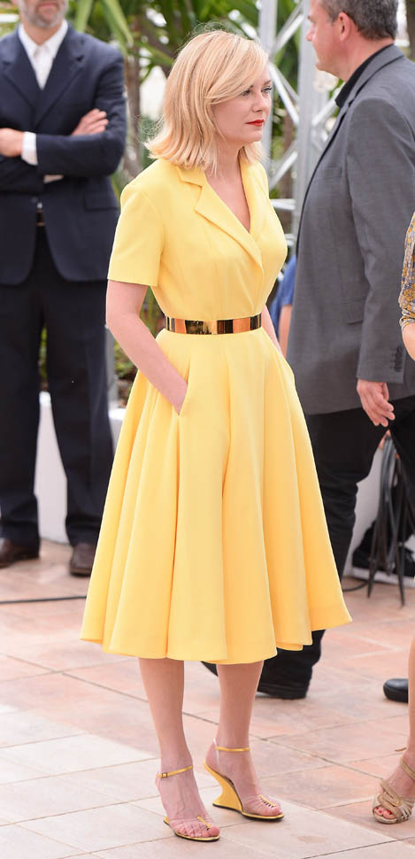 The collar kinda looks like a server’s dress but that gold belt makes it something else entirely. It’s such a bright, fresh way to start the festival. Am so excited for what she’ll be bringing every night to the palais.