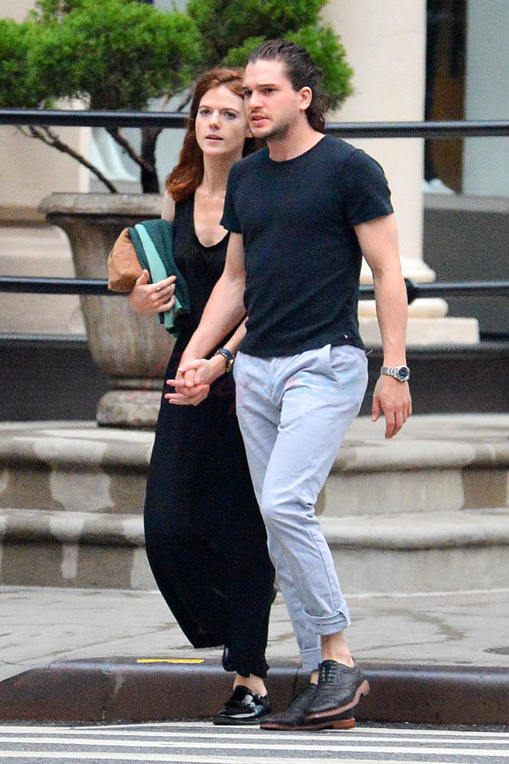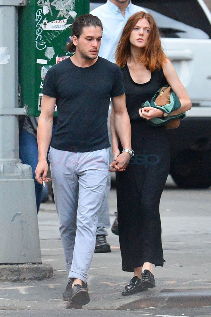 Here are Kit Harington and Rose Leslie out for a walk in New York the other day holding hands. He’s there shooting The Life And Death Of John F Donovan, Xavier Dolan’s first English language film. Production on John F Donovan started in Montreal earlier this summer. Interestingly, production on Season 7 of Game Of Thrones started last week in Northern Ireland about 6 weeks after they normally begin shooting. Peter Dinklage was seen arriving in Belfast.