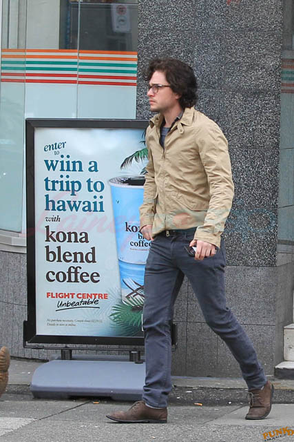 Here’s Kit Harington in Vancouver this weekend. He’s in town working on The Seventh Son starring Jeff Bridges, Julianne Moore, and Ben Barnes with whom he’s been hanging out during off work hours. Am told Kit, as you’d expect, is really, really, really nice, and polite, and sweet, and unassuming.