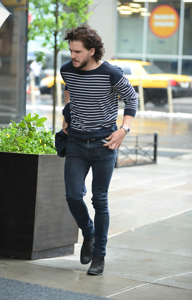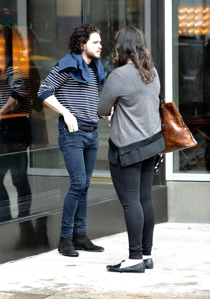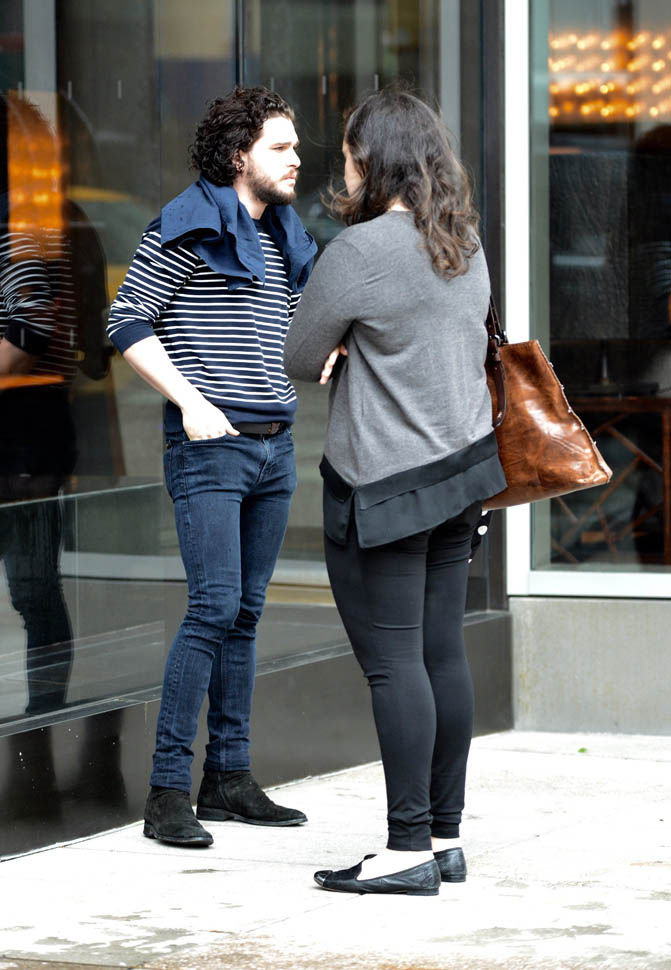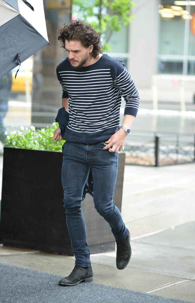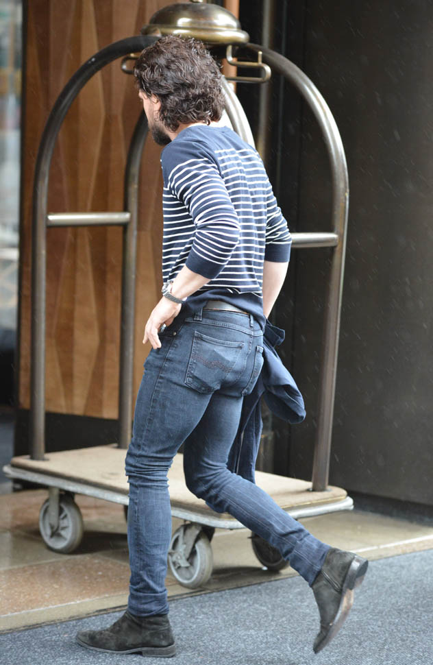 Check out Kit Harington in New York, having a smoke outside his hotel today, one day after what happened last night – what many are calling one of the best episodes of Game Of Thrones of all time. At least top 3. That battle was so well-directed, but in particular, to me at least, the last minute or so, when Jon and the zombie boss are staring each other down. Or, rather, the zombie boss is staring down Jon who can barely breathe and is straight up terrified. It reminds me of that interview Kit gave at the start of the season when he said it was the first time he’s had more pages than Peter Dinklage. He also said that that entire fight – it took a month to shoot – was the hardest thing he’s ever done. Yeah.