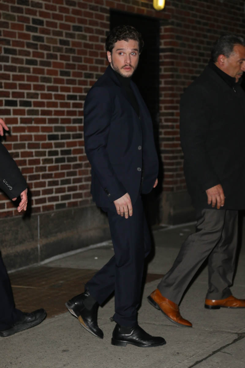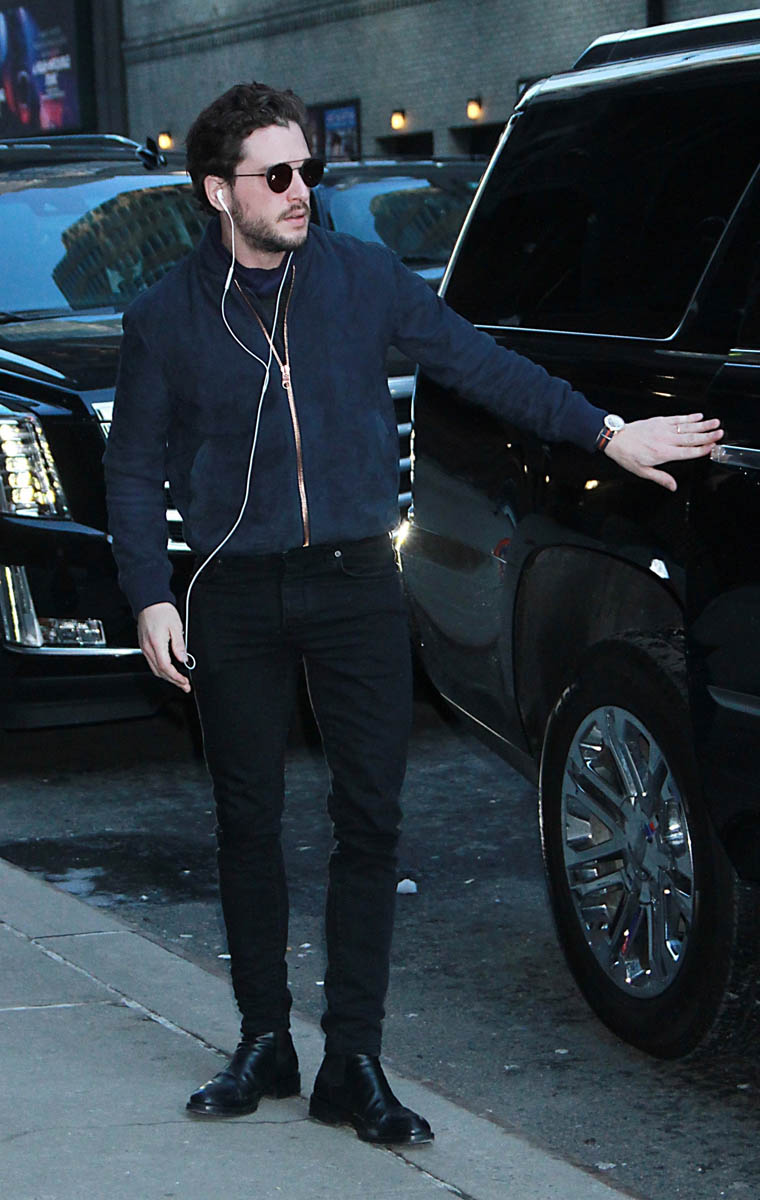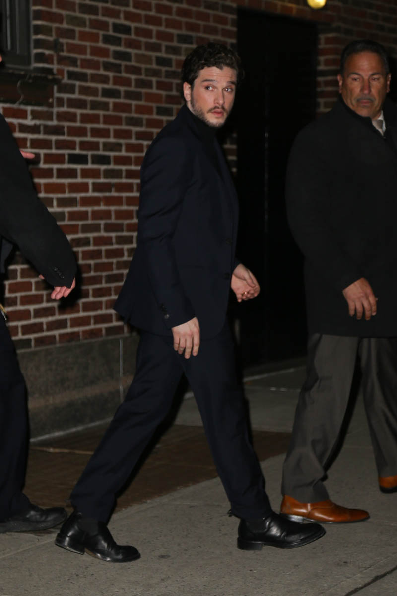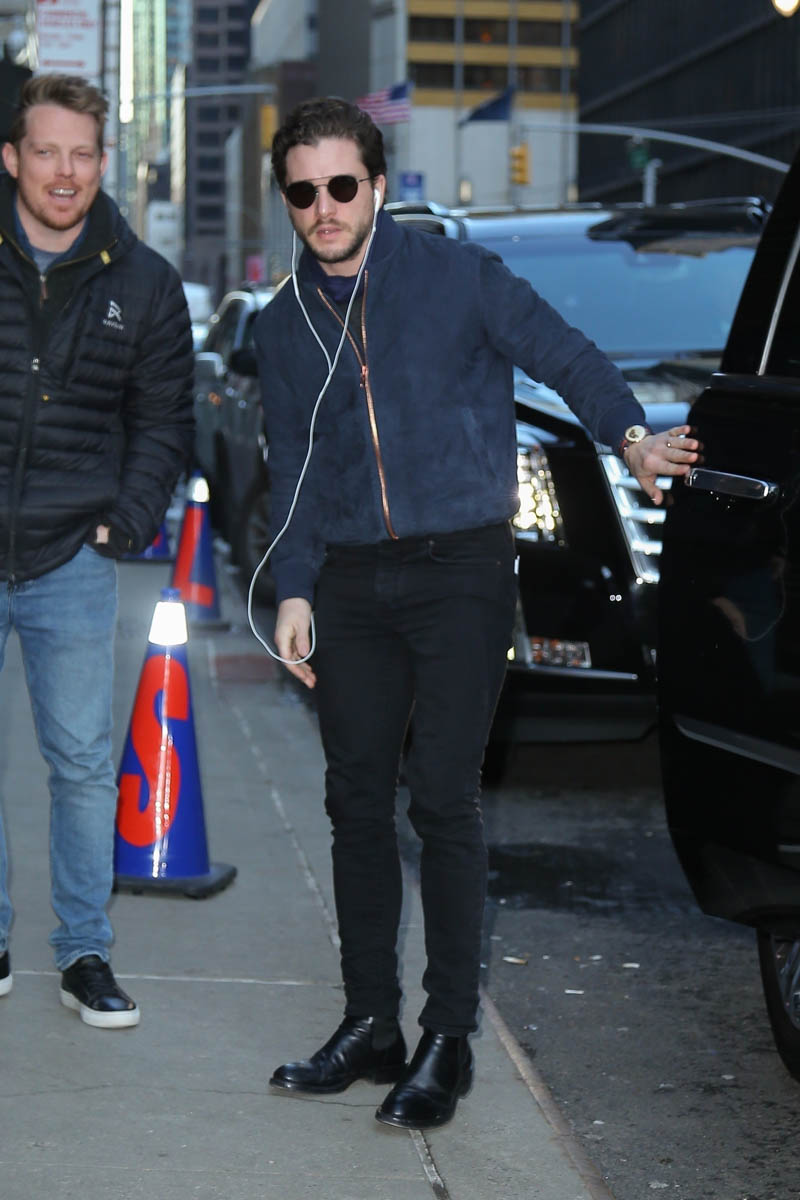 Speaking of answers, though, Kit doesn’t have many for Stephen because, as they both point out, he’s not allowed to give any. He’s not even allowed to react to the questions, really, so I guess, the joke here is why he’s even doing press to begin with. The one thing they are all permitted to talk about is the big battle scene, which is not a spoiler. Everyone is waiting for the Ultimate Battle. It was filmed over 55 nights. It could be the most extensive and expensive battle scene ever filmed for TV and movies. Presumably part of the battle scene will involve Kit as Jon Snow riding a dragon, alongside his lover-aunt, Daenerys Targaryen. And that’s probably one of the most important answers we need: what will happen when Jon finds out that they’re related?