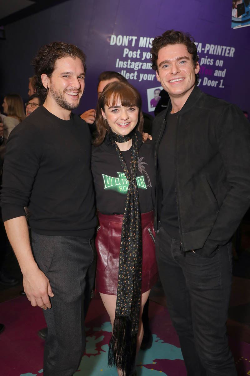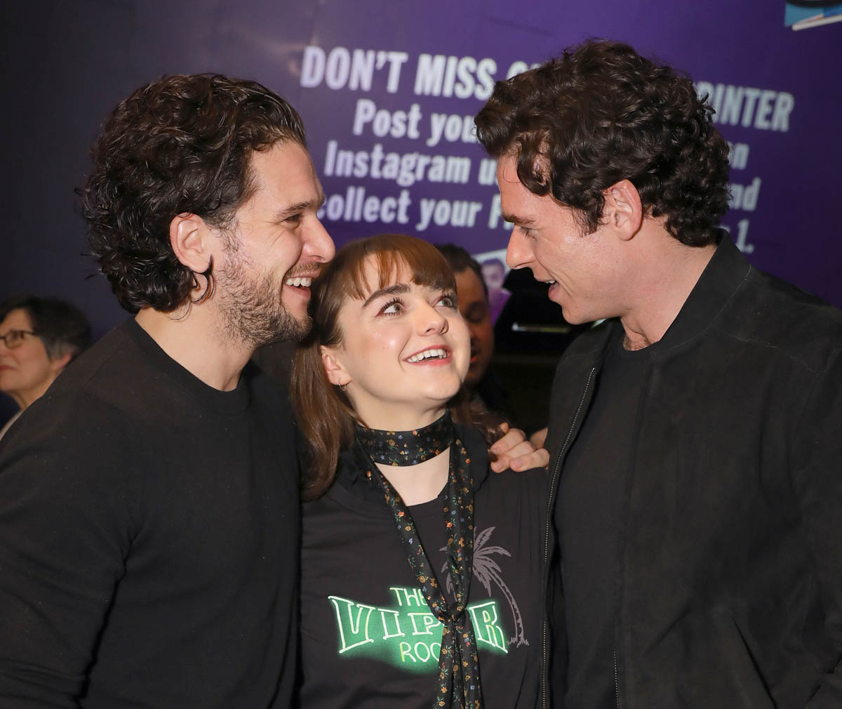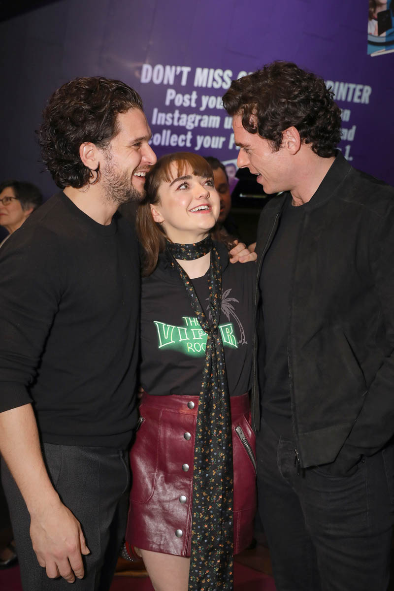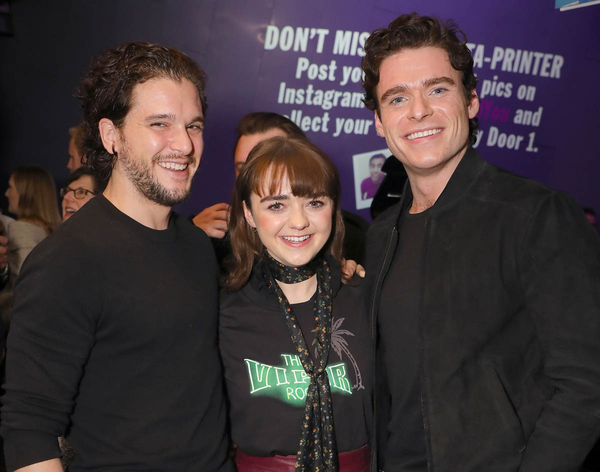 Anyway, until then, whenever that will be, this will have to do. And it’s really f-cking cute. Maisie Williams is making her stage debut in London in a play called I and You. Richard Madden and Kit Harington, her Stark brothers, Robb and Jon Snow, came to support her.