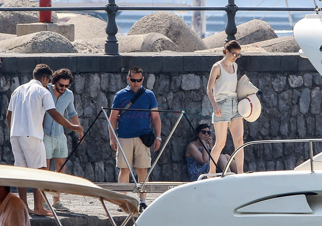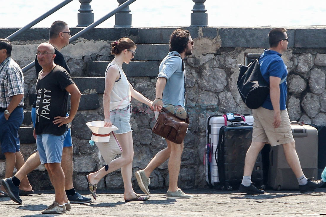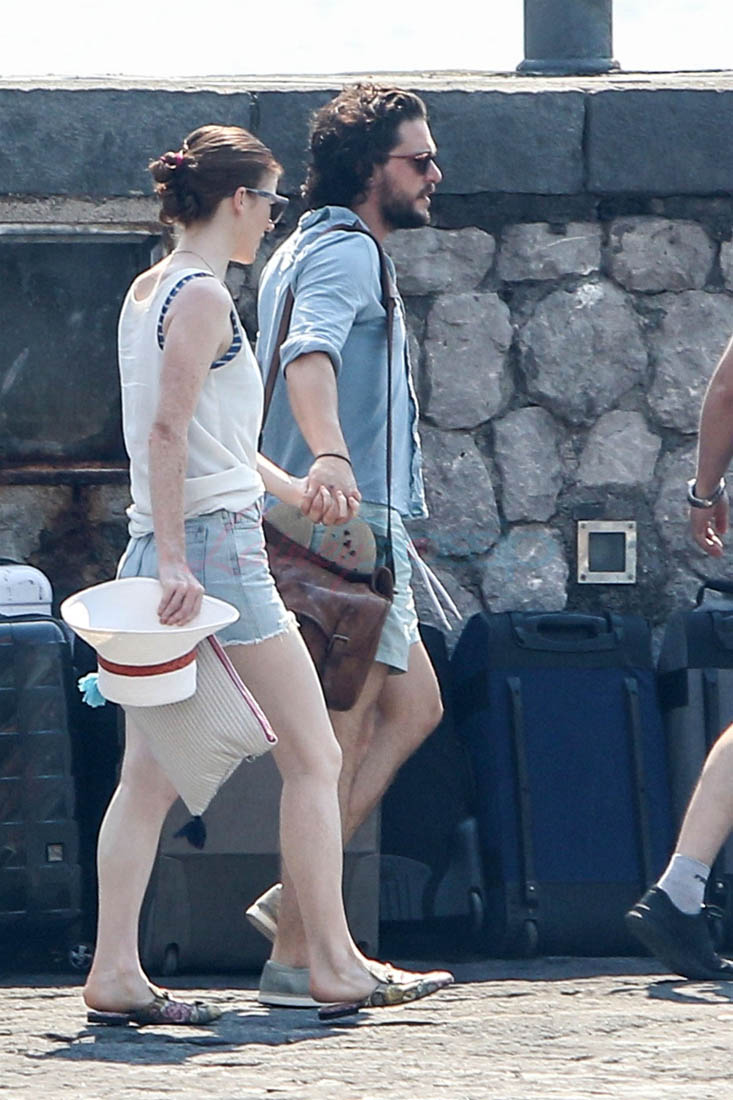 Kit Harington and Rose Leslie were photographed together in Capri yesterday. Also they are NOT engaged. They are not engaged because it was Life & Style that reported that they are engaged. That should have been your first indication. When contacted about the story, his rep told Metro UK that, “They are not engaged”.