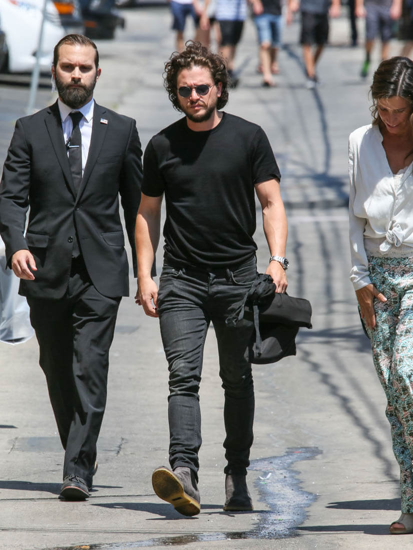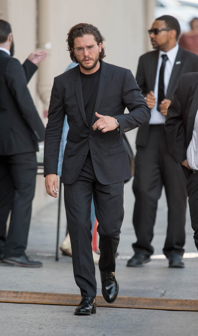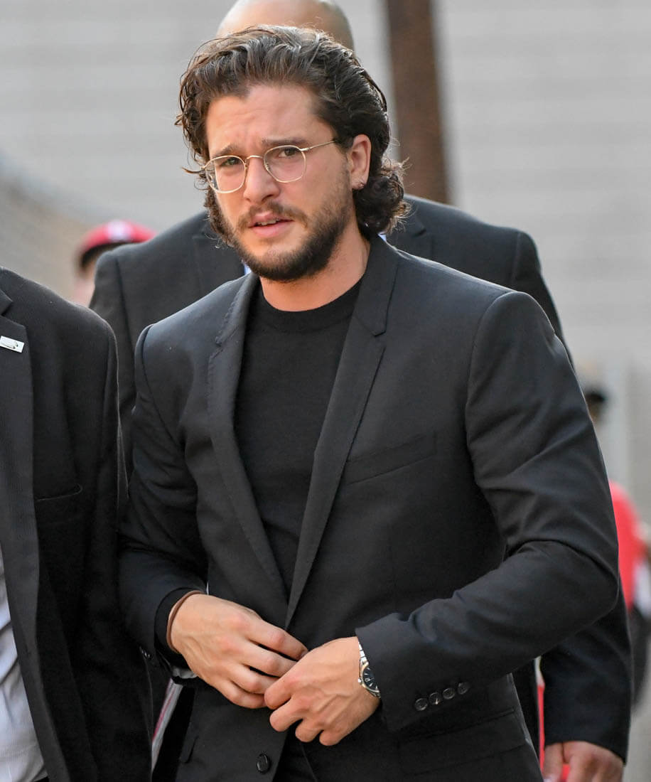 Here’s Kit Harington yesterday at Jimmy Kimmel ahead of the premiere. During the show they aired his “audition” tape from way back, when he tried to be all sorts of other characters. I don’t… think it’s all that funny? Until the end. Obviously.