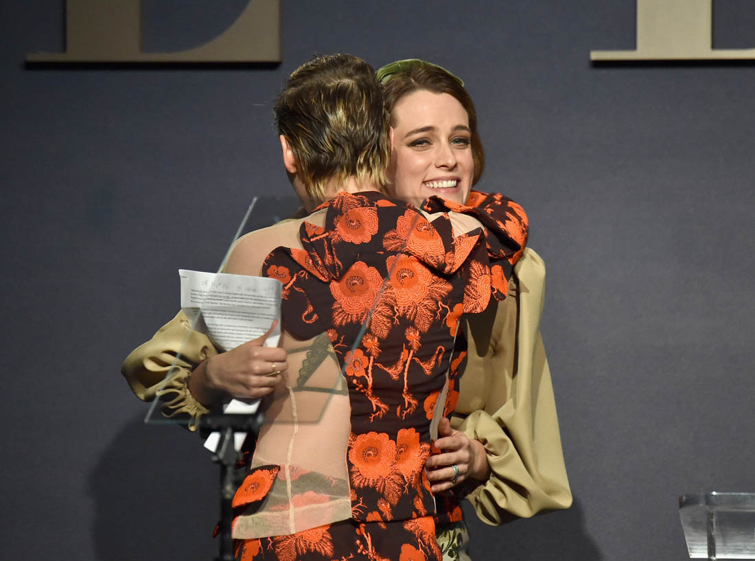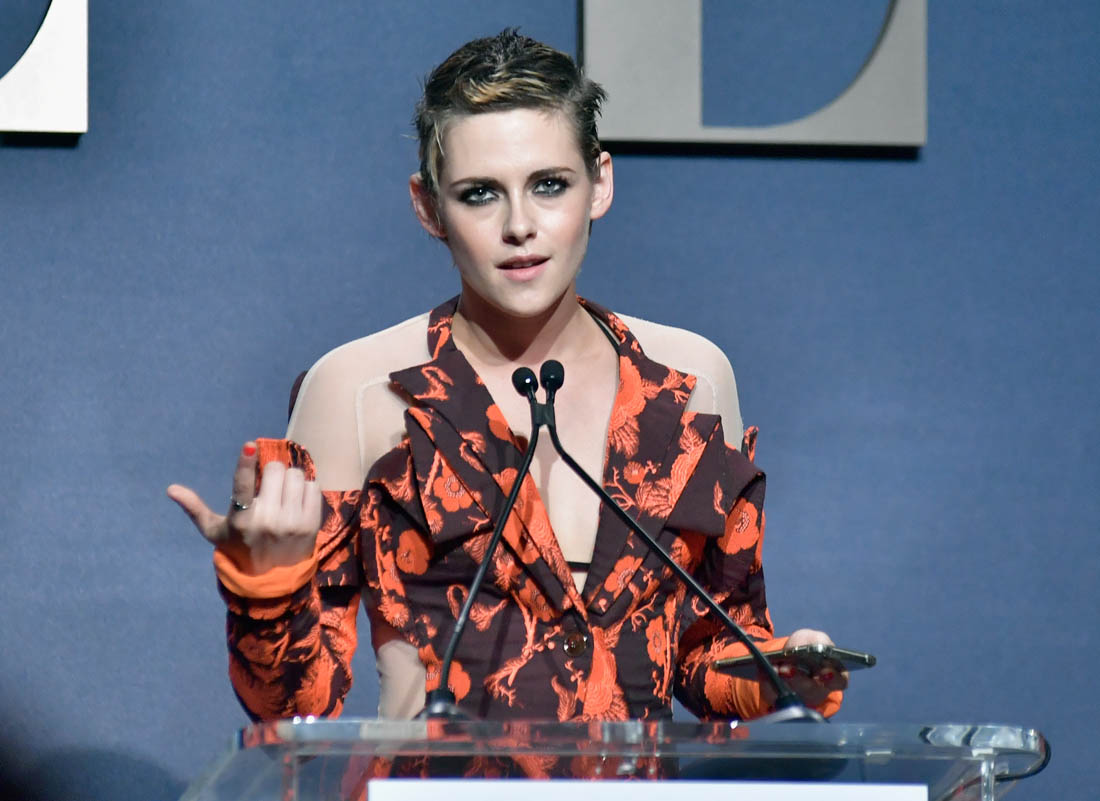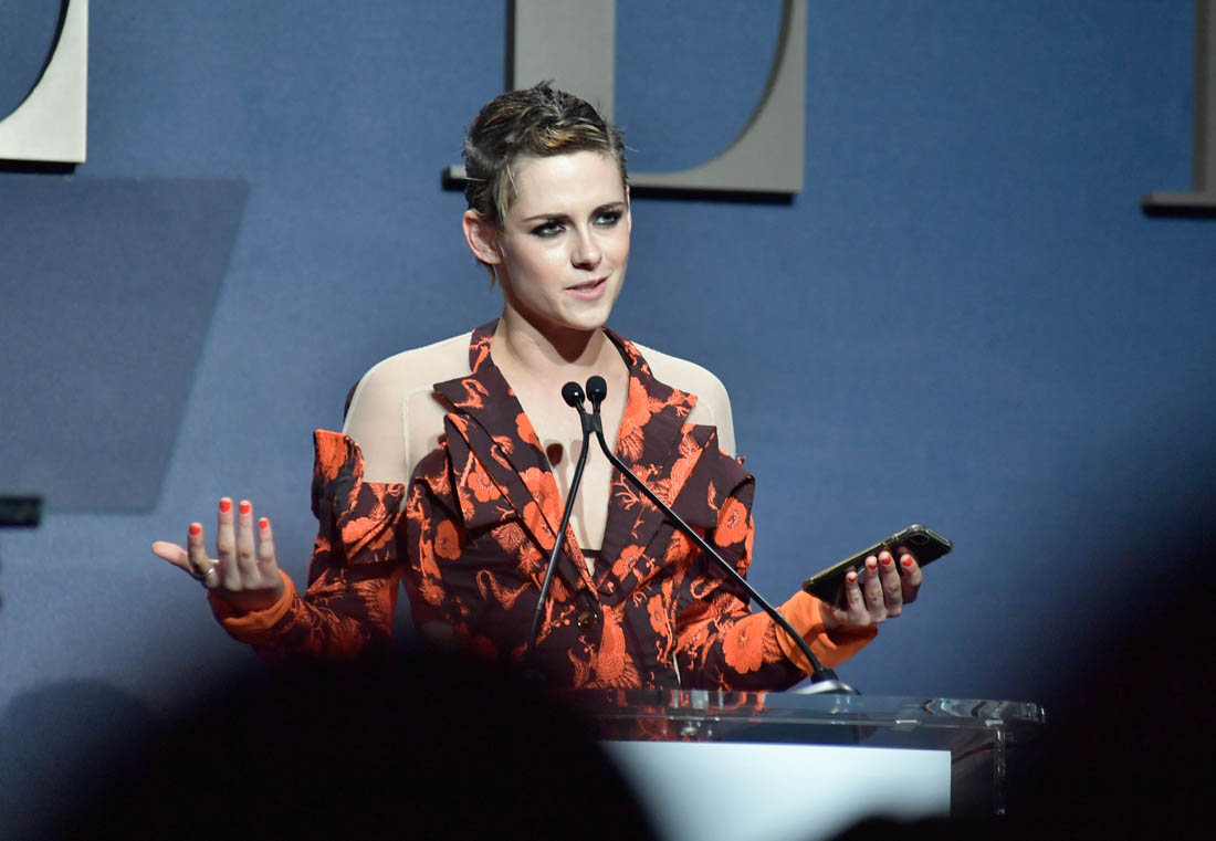 Kristen Stewart was there to honour her friend Riley Keough. Before introducing Riley, Kristen commented on the main conversation that’s dominated Hollywood, publicly now, for the last two weeks: