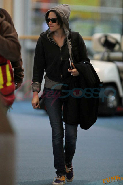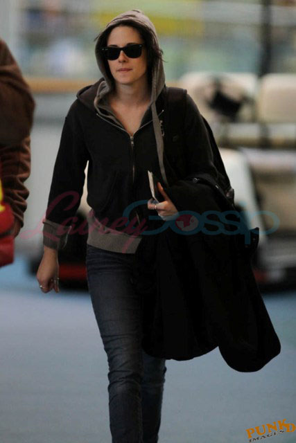 OK! Magazine just posted some bullsh-t article about tension between the two young stars about a supposed split even though they also said they’d moved in together just last week. The magazine noted that Stewart and Pattinson left in separate cars together after work last night/this morning and couldn’t stand to be around each other at the airport upon departure this afternoon, travelling once again in two different vehicles.