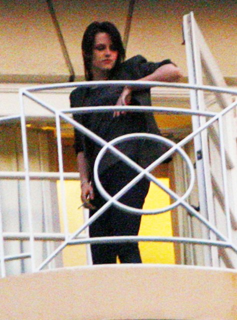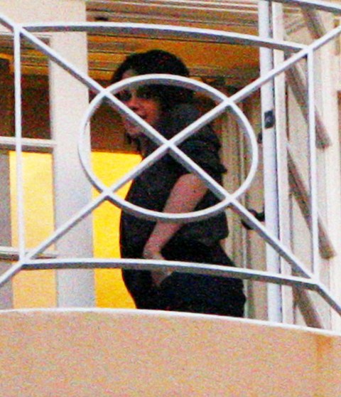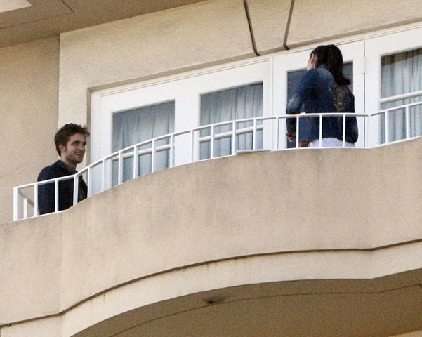 Don’t go spoiling their French premeere of New Moon because I will cut a bitch and that will be you. Why isn’t Kristen Stewart on that balcunny with you? Is it because you set this up? Well KSTEW looks happy. Happy every night to be make sweet love with Rob every night, sister stupid!