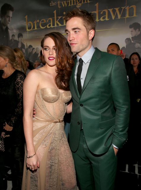 Pattinson’s green was a nice complement to his girlfriend’s provocative Zuhair Murad, not my favourite designer (see Carrie Underwood, Taylor Swift, and Jennifer Lopez for previous), but I appreciate the effort to not look like Ashley Greene in a tired, unimaginative indistinguishable flowy princessy gown. Stewart’s style statement the last few weeks seems to be that she will not be Safe. I dig it, though I wonder if there’s a solution to the crotch factor of this dress. Stewart has thin legs that don’t touch at the top, see? So when your eye is drawn to that area -- and please, it’s a see-through dress, don’t tell me your eye is not drawn to that area -- the dark space from certain angles looks like a bush. So do you make the lining thicker? Sure but then you lose the effect for the sheerness everywhere else. Maybe it’s a different colour altogether. The nudeness of the material certainly doesn’t help. In black we probably wouldn’t have a problem.