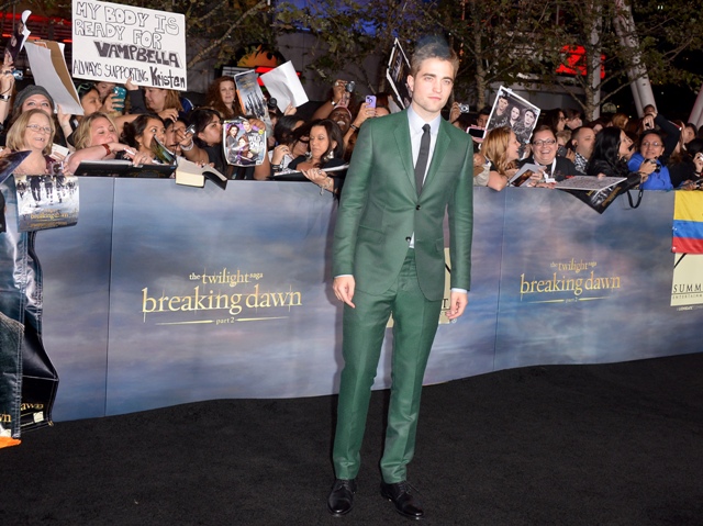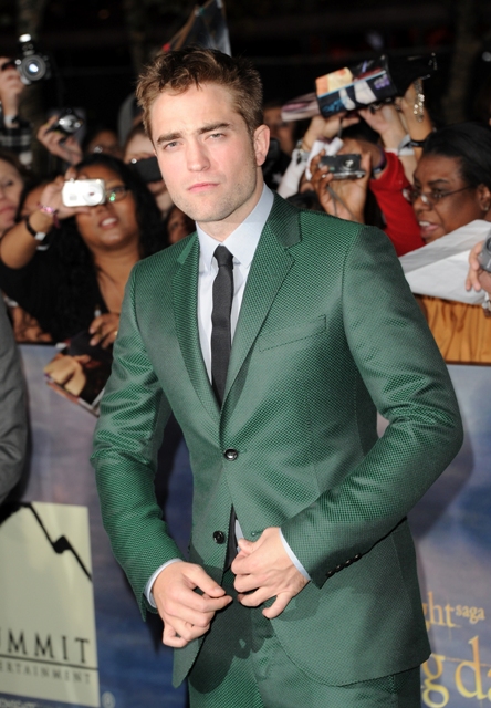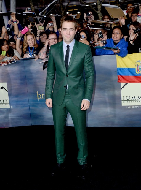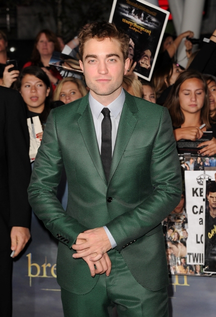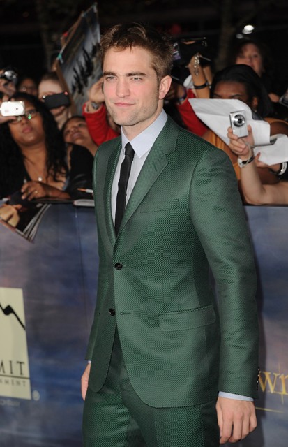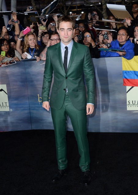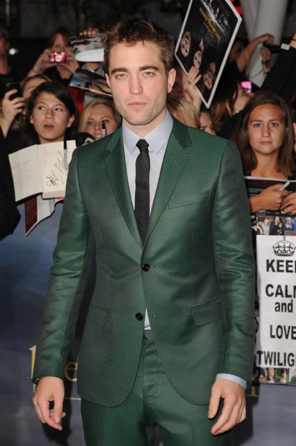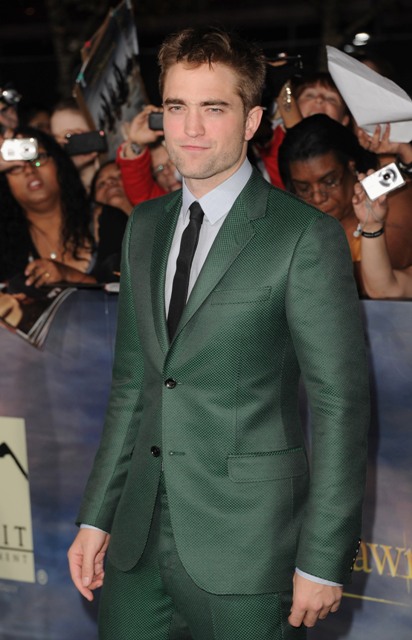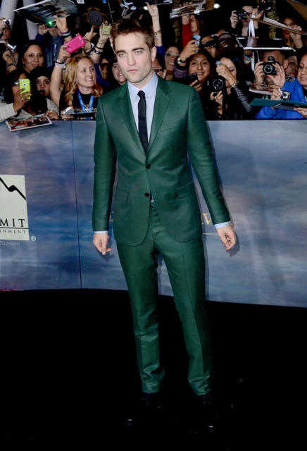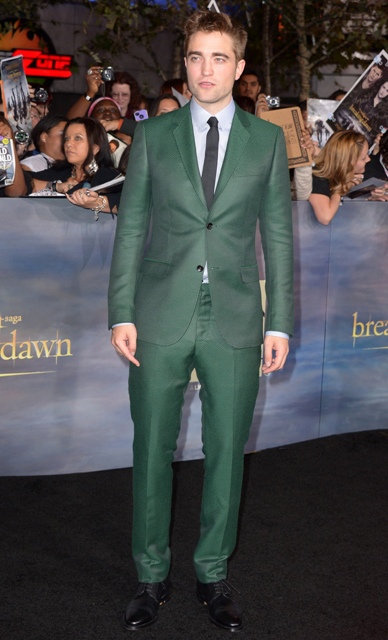I like it that Robert Pattinson is adventurous about his suit colours. This suit looks like it could have been fashioned out of a handbag. And it’s enough. Too much would be a spiked out silly cape, like the Spice Girls video for Say You’ll Be There only without the campy irony.