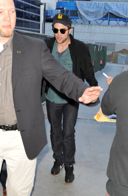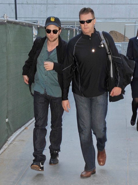 Two pictures attached of Pattinson arriving back in Los Angeles on Sunday in advance of tonight’s premiere.