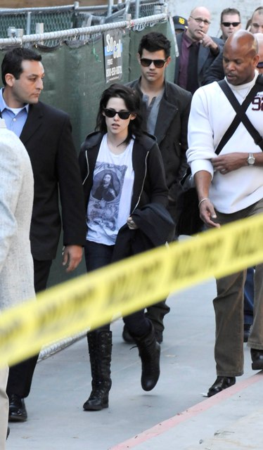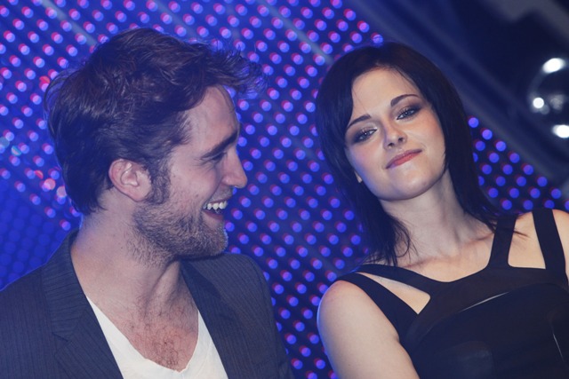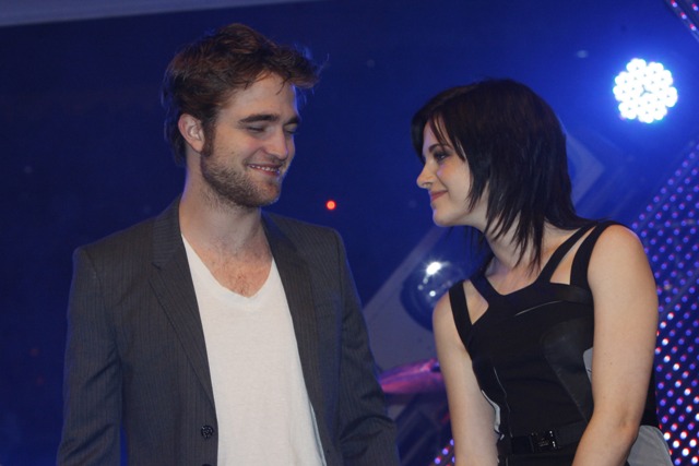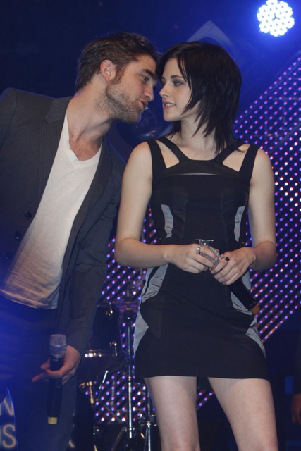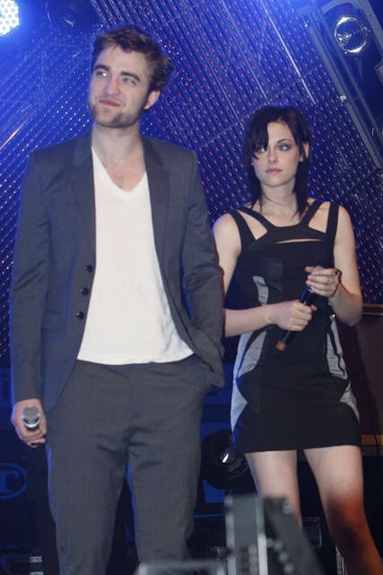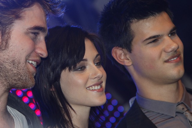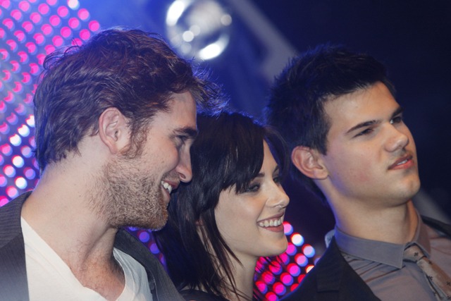 But while Kellan was promoting in Canada, Kristen Stewart, Robert Pattinson, and Taylor Lautner were still overseas at a Munich fan event on Saturday. Stewart continued to own it several levels above her co-stars, Lautner apparently has never heard of a t-shirt and jeans, and Pattinson keeps trying to hide his pretty. It’s working.