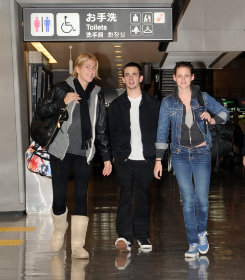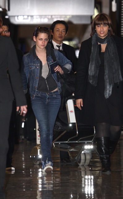 Kristen Stewart arrived in Tokyo today in advance of the Twilight Japanese premiere this week. Right off the plane, her bitch must be bitchier than usual. This could come in handy. Perhaps she’s already torn a strip off her costar Robert Pattinson for bringing Ebola into the equation.