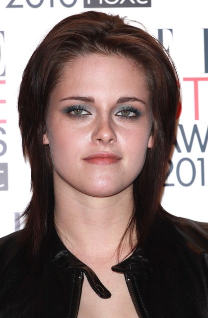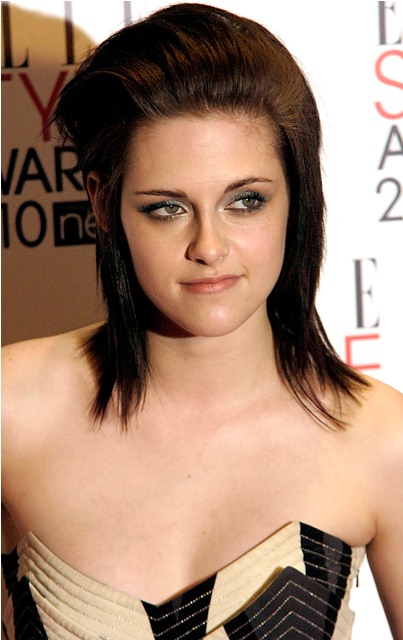 MUCH better. Yesterday I ragged on Kristen Stewart’s poorly fit BAFTA dress and her massage parlour shoes. One day later she hit up the ELLE Style Awards to collect her award for Woman of the Year in a smart strapless Pucci that was the right size. Well done. But I will say I liked it better when she threw on her leather jacket and her hair fell flatter. Wasn’t really feeling the big swirl mostly because her hair is longer now, it extends to her shoulders. So when she elongates off the forehead and from the bottom of her chin, the result is a huge face stretch. Makes her features bigger than they are. She has delicate, beautiful angles. But the illusion with the pouf is exactly the opposite.