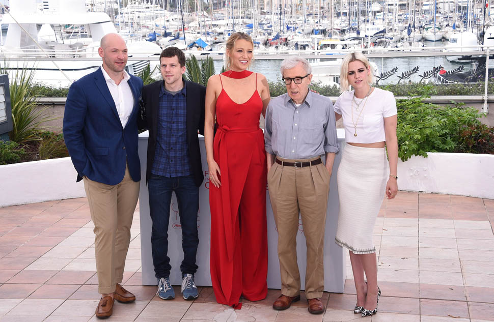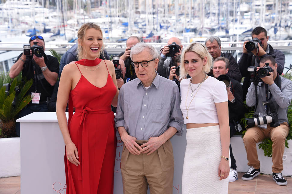 Kristen Stewart, Blake Lively, Corey Stoll, and Jesse Eisenberg with Woody Allen at the photo call for Café Society in Cannes today. Let’s begin with an upliftingly gross quote from 80 year old Woody: