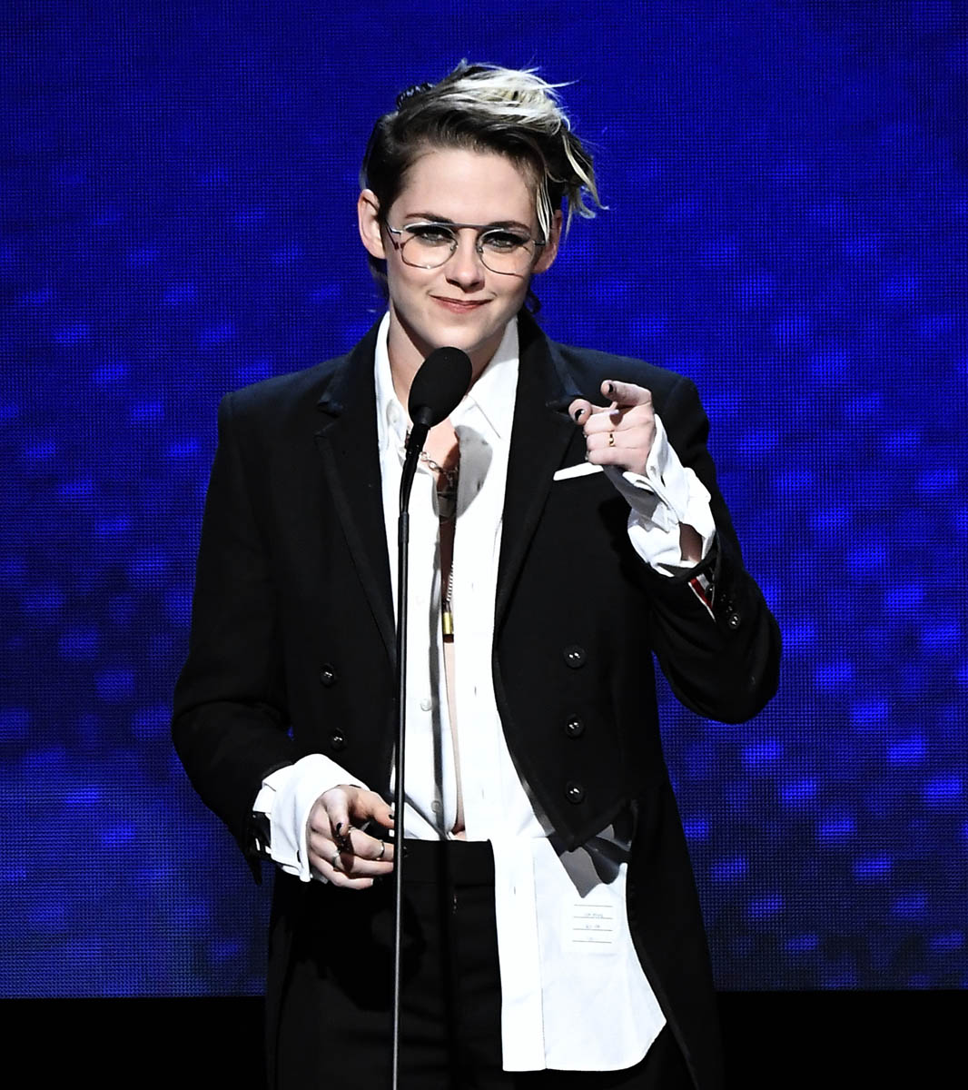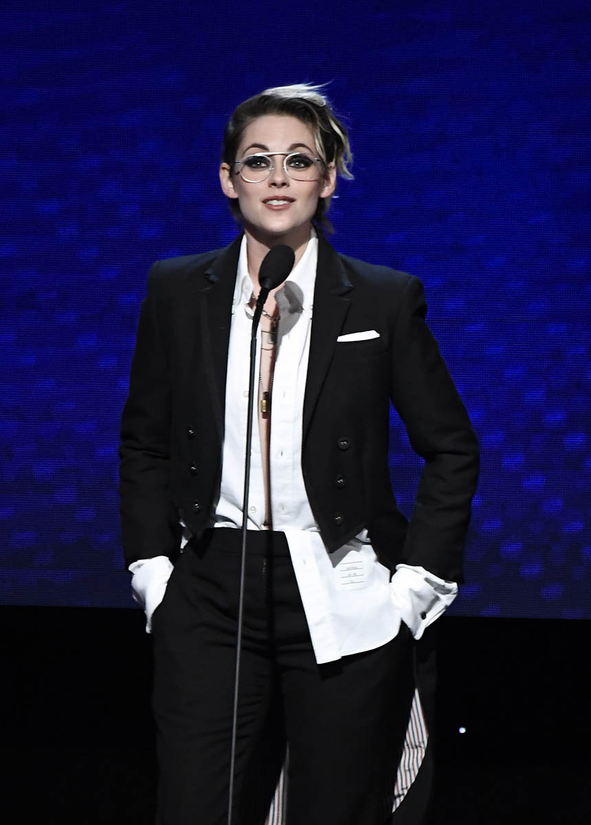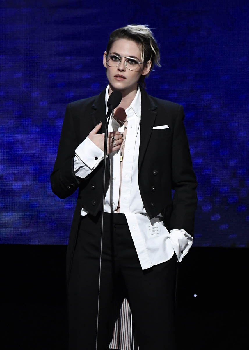 I’m not gay but I have a feeling I’ll be thirsting after Kristen Stewart too. I was thirsting after seeing shots of her at the American Cinematheque gala the other night honouring Charlize Theron in a morning suit with the shirt unbuttoned past the navel and sneakers and glasses, and all I can say to this tweet is… same: