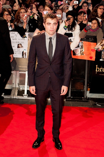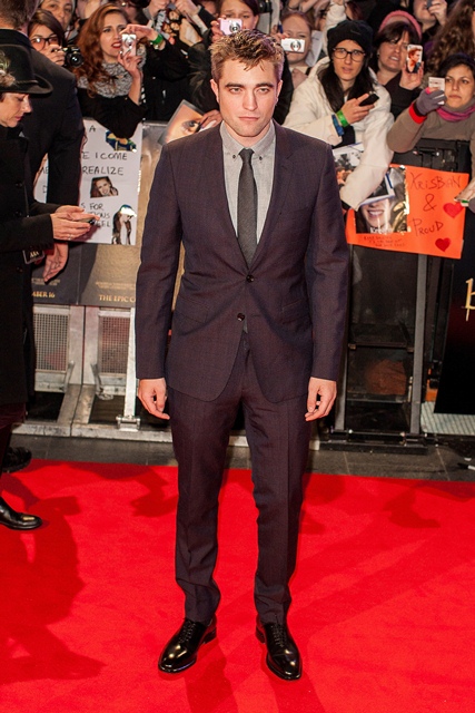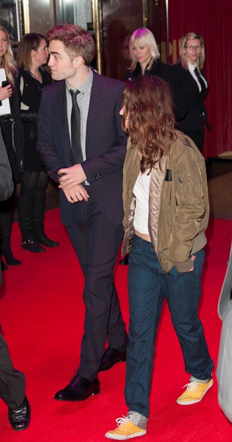 Perhaps that’s why Stewart looked like she’s wearing someone else’s entire outfit on her way out of the premiere. That jacket is way too big. And I’ve a feeling those pants are his.