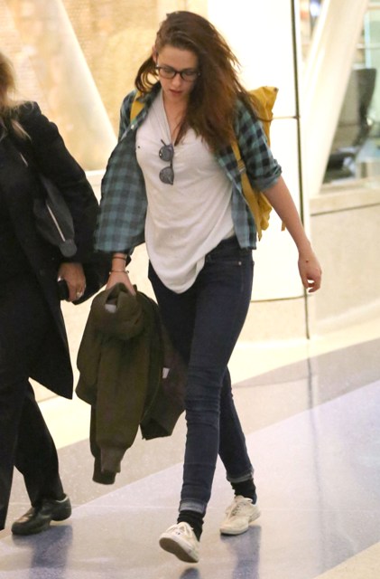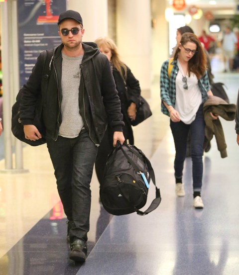 Attached - Jennifer Lawrence shooting Catching Fire in Hawaii and Kristen Stewart arriving at LAX with Robert Pattinson yesterday after spending the holiday in the UK and NYC.