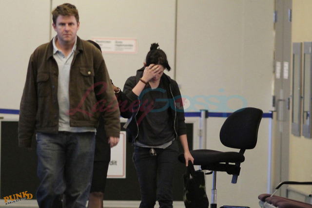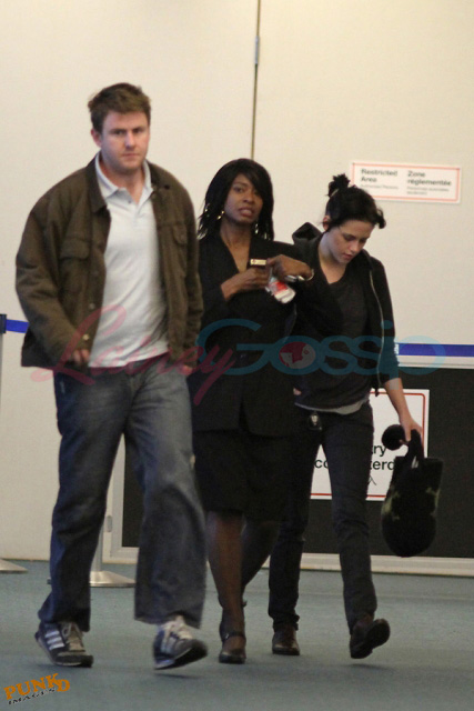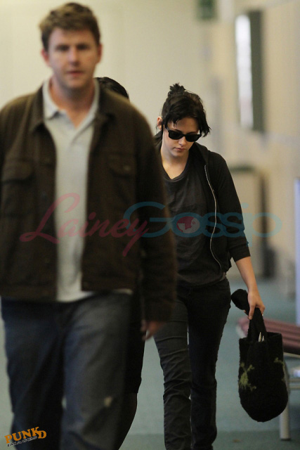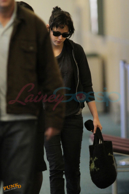 PUNKD Images photographed Kristen Stewart at Vancouver airport THIS MORNING headed for Los Angeles, a quick trip home with her manager. She looks cute. And sleepy. She was on set for Eclipse in Vancouver until midnight last night. And if my hair was cut like that and shoved into a little tail my name would be Hideous Freak. But the only thing Kristen Stewart can’t work is a busted ass Summit wig. When it comes to her own hair, it’s always good.