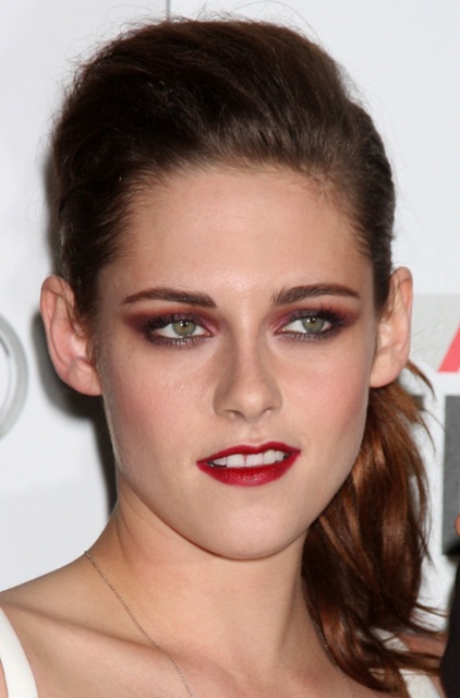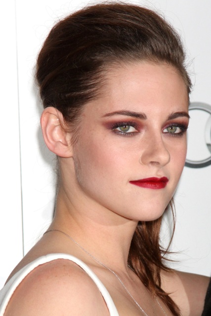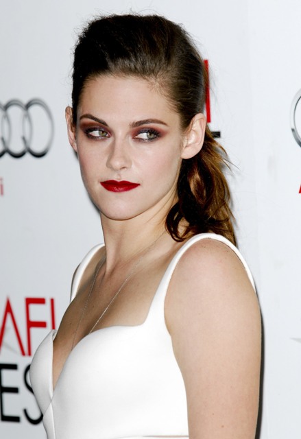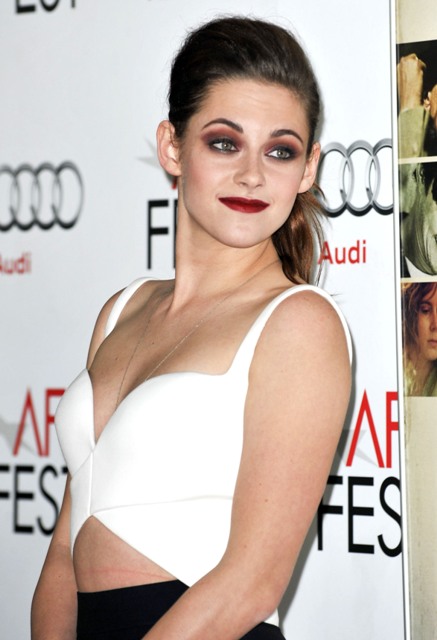 Kristen Stewart wore Balenciaga the other night at the AFI premiere of On The Road. It’s certainly not a twinkly strapless Oscar De La Renta dress for the MiniVan Majority. Which is why I dig it. That the makeup isn’t safe. The look is certainly not safe. That at 22, aligned with a luxury brand known for pushing the standard on shapes and structure, she is experimenting with fashion and seems to be enjoying the process. No, I don’t love the brassiere texture of the top and I agree that the heavy dark eyeshadow and lips doesn’t present her at her “prettiest”, but then again, “pretty” wasn’t the objective here. For example, would it be different, how you feel about this look, if you were seeing it on Gwen Stefani instead? The assertion here then is that style-wise, Kristen Stewart can go there. Agree or disagree?