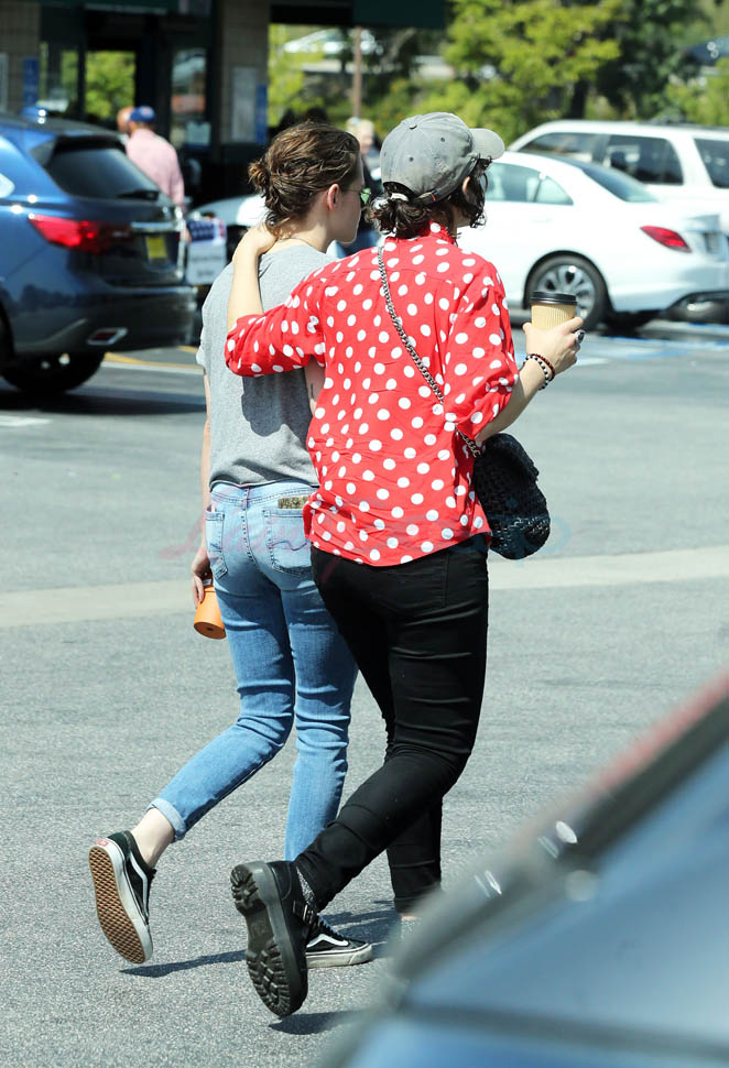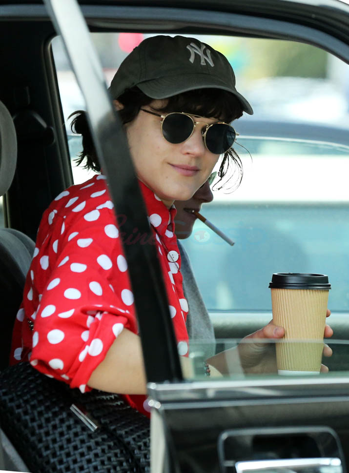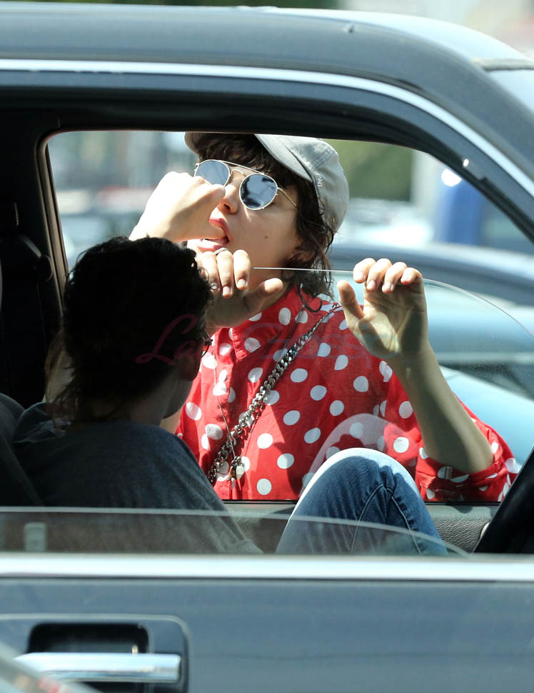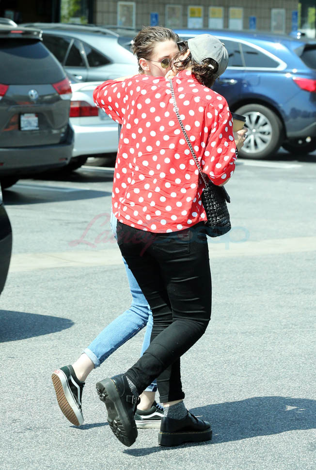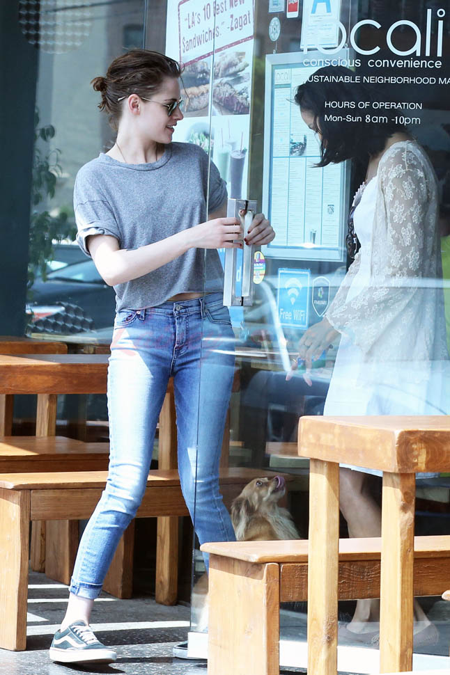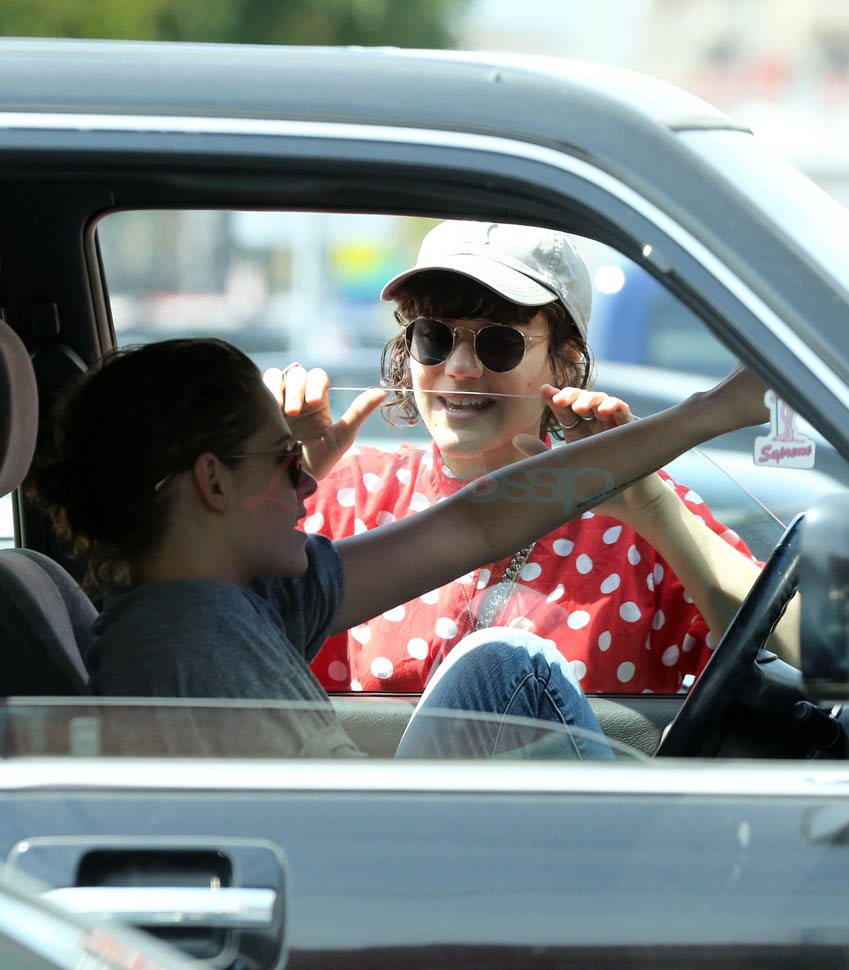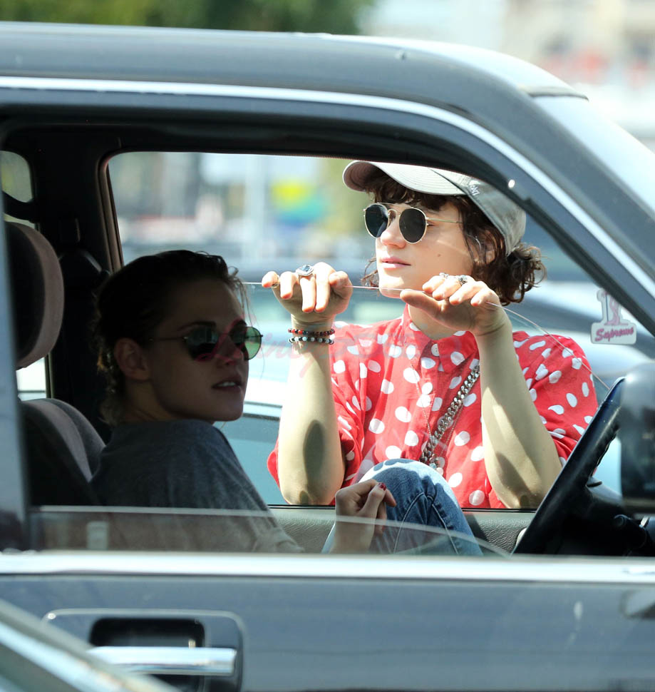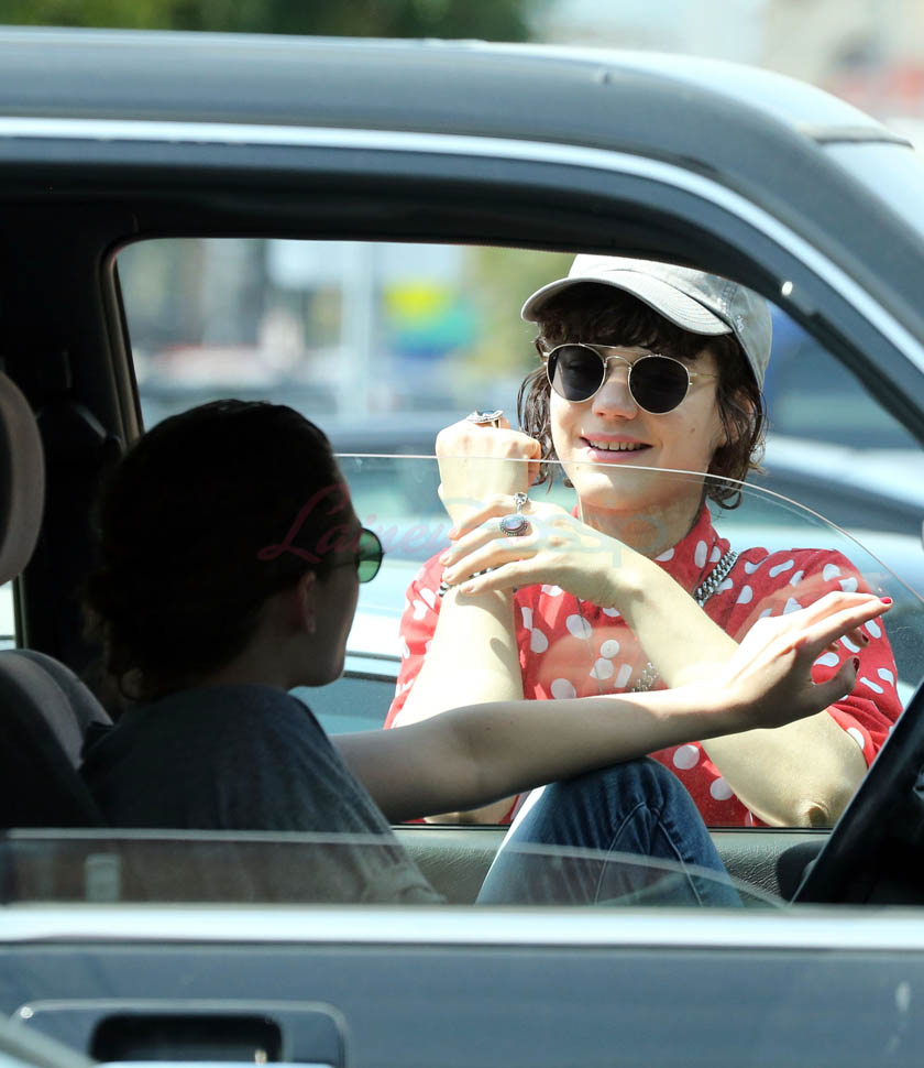 Kristen Stewart and her girlfriend Soko were in LA for Easter Weekend. They’ve been papped consistently the last couple of weeks and definitely not running for cover in the presence of photographers. In fact, this is the most open Kristen’s been in a relationship. When she was with Robert Pattinson it was practically dumpster-diving every time. With Alicia Cargile, there was less of an escape impulse but it certainly wasn’t what we’re seeing with Soko – holding hands, in the street kissing, and now… thumbsucking?