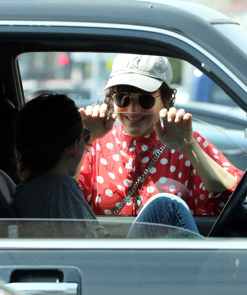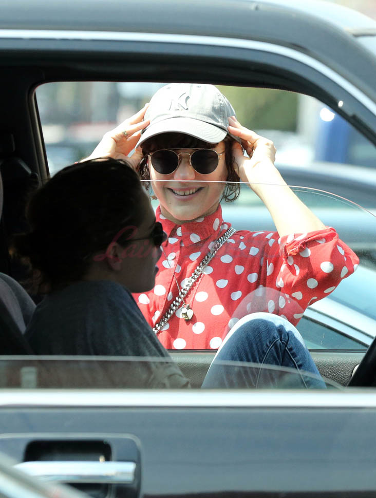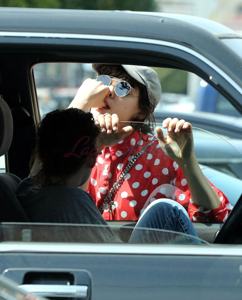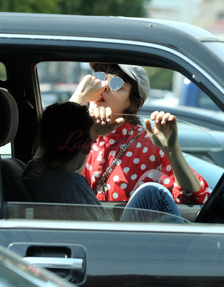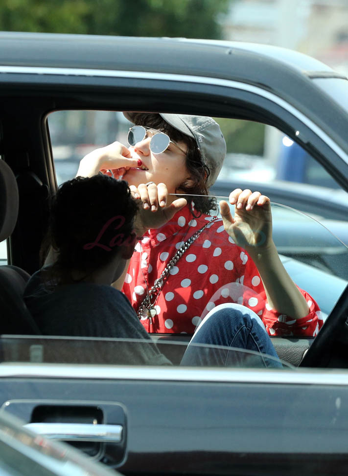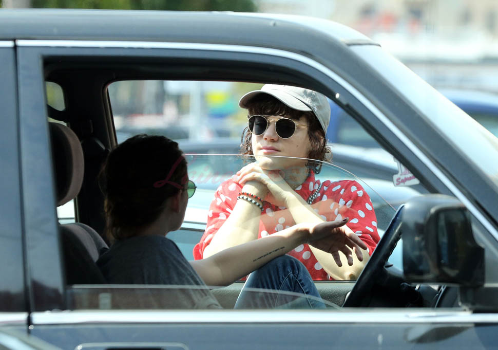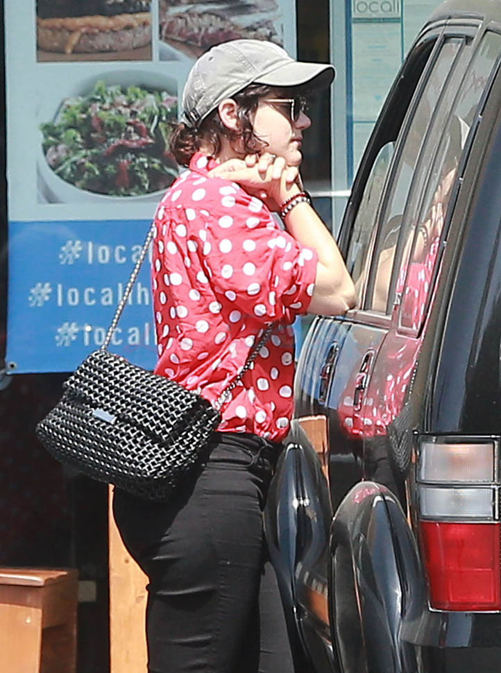 Kristen Stewart and her girlfriend Soko were in LA for Easter Weekend. They’ve been papped consistently the last couple of weeks and definitely not running for cover in the presence of photographers. In fact, this is the most open Kristen’s been in a relationship. When she was with Robert Pattinson it was practically dumpster-diving every time. With Alicia Cargile, there was less of an escape impulse but it certainly wasn’t what we’re seeing with Soko – holding hands, in the street kissing, and now… thumbsucking?