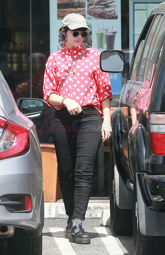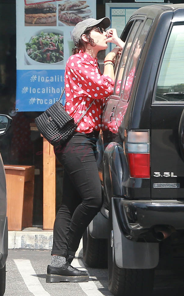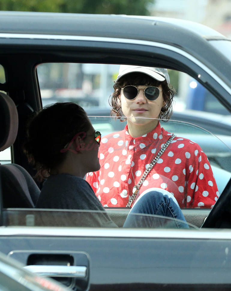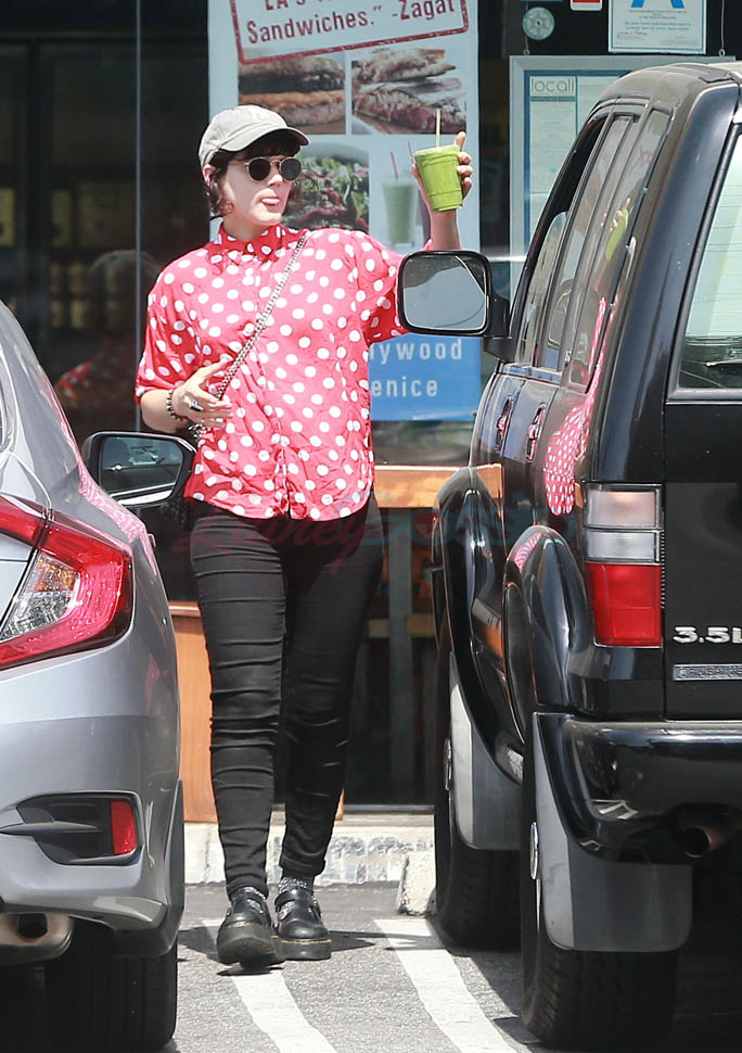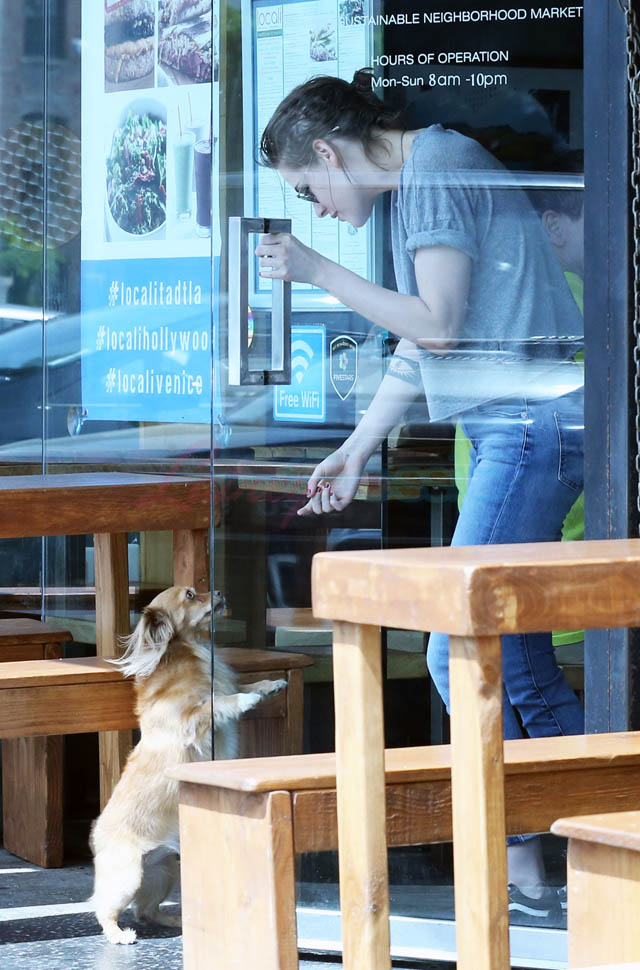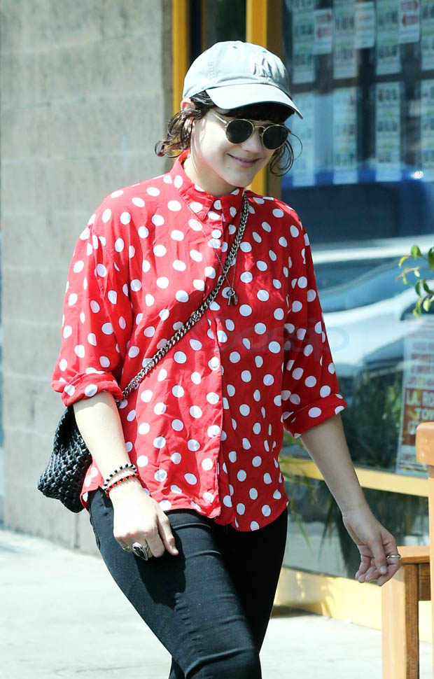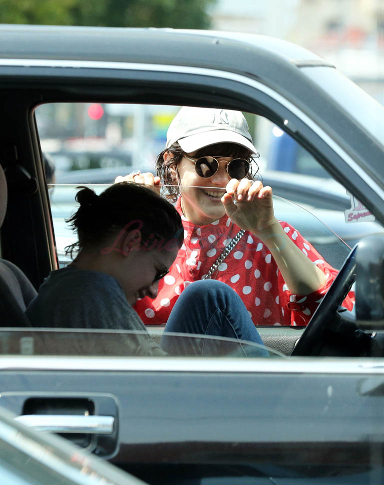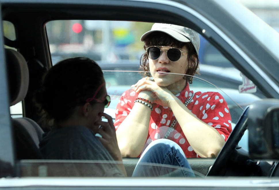 Kristen Stewart and her girlfriend Soko were in LA for Easter Weekend. They’ve been papped consistently the last couple of weeks and definitely not running for cover in the presence of photographers. In fact, this is the most open Kristen’s been in a relationship. When she was with Robert Pattinson it was practically dumpster-diving every time. With Alicia Cargile, there was less of an escape impulse but it certainly wasn’t what we’re seeing with Soko – holding hands, in the street kissing, and now… thumbsucking?