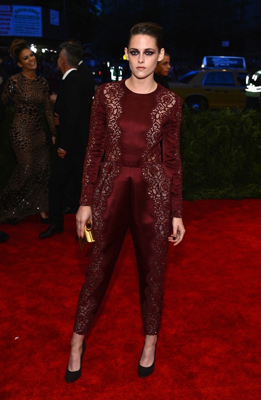 With the exception of Jessica Pare, which was tragic anyway, very few attendees punked out in pants. Kristen Stewart not only chose pants, she also played up the androgyny. Sure, the crotch area isn’t a great fit, but I’m not sure that wasn’t intentional. Fitted pants would change the tone of look entirely. Fitted pants would swing the outfit over to the feminine. Her sex appeal here isn’t in the feminine or the masculine but in what can’t be defined. There’s a natural raw hardness to Stewart -- it reminds me of my beloved Gia Carangi -- that McCartney is bringing out in her styling. It’s why she looks so much more comfortable and confident here than, say, in comparison to that sh-tty Reem Acra gown that she wore to the Oscars. Click here for a refresher. Why was Kristen Stewart down-dressing in Reem Acra anyway?