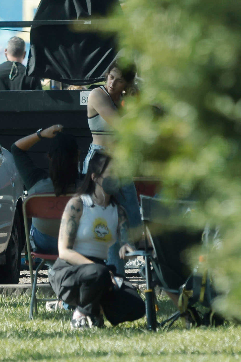 Kristen Stewart was photographed this week on the set of Love Lies Bleeding in New Mexico. As you can see, she’s changed her hair colour and cut for the role. It’s brown now and in a mullet, shorter than the mullet she had when she played Joan Jett in The Runaways and holy sh-t, can you believe that was 12 years ago?