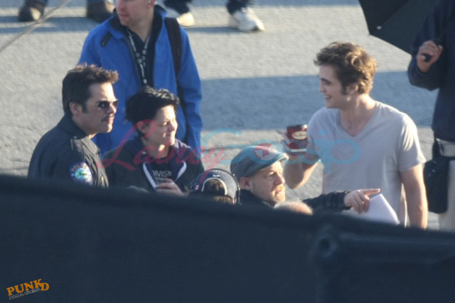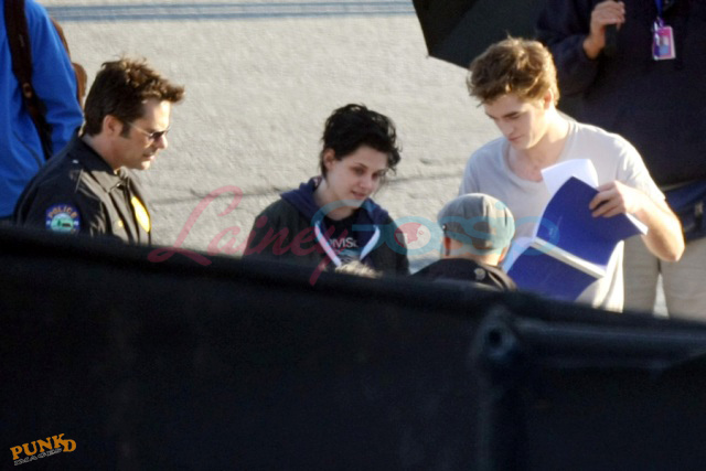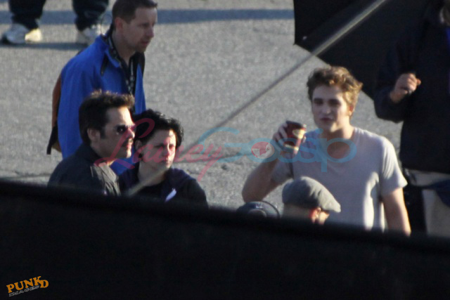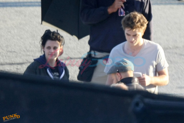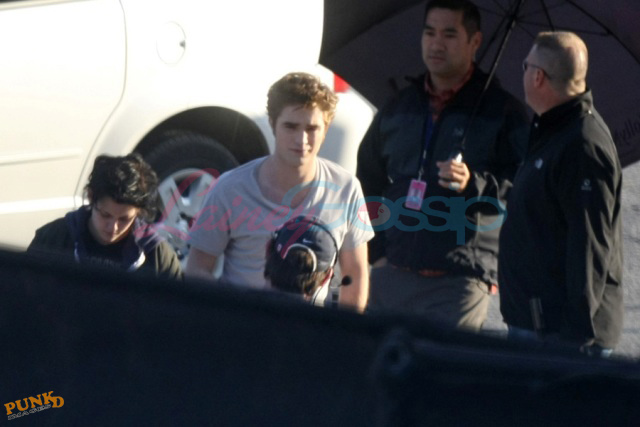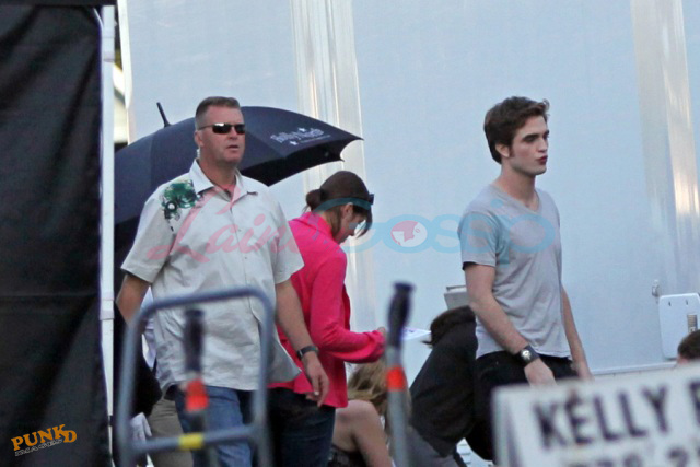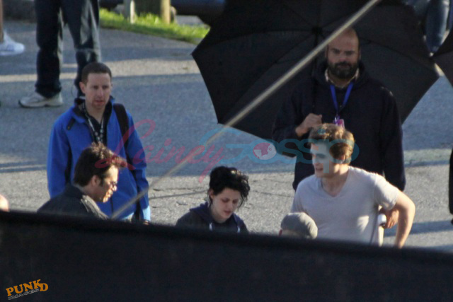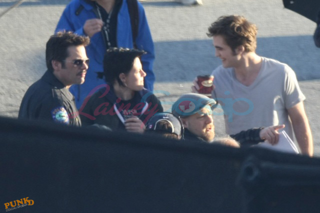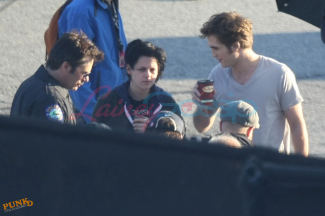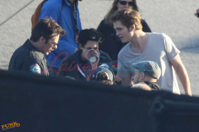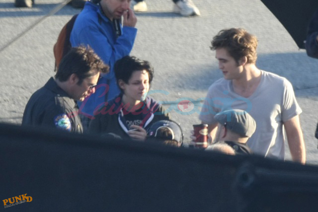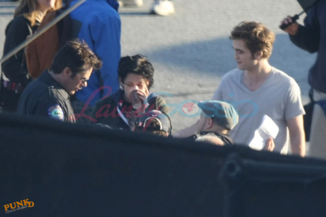 Earlier this week, Pattinson was shooting vampire fights on the second unit while the main crew filmed Stewart with Taylor Lautner’s “Jacob” and his boys and Leah’s transformation is revealed.