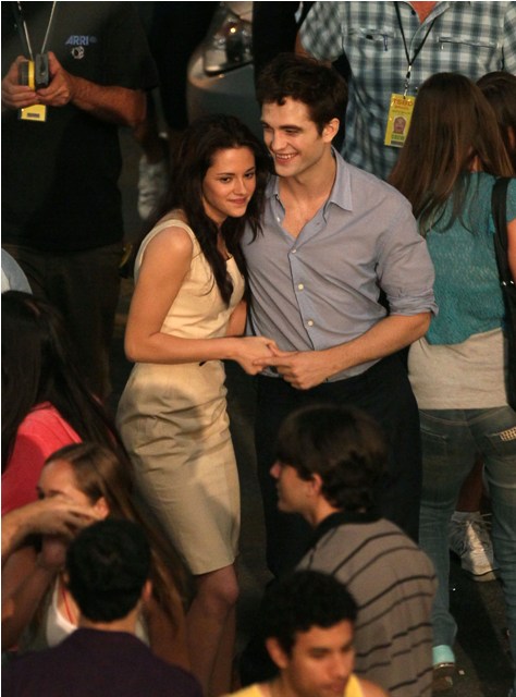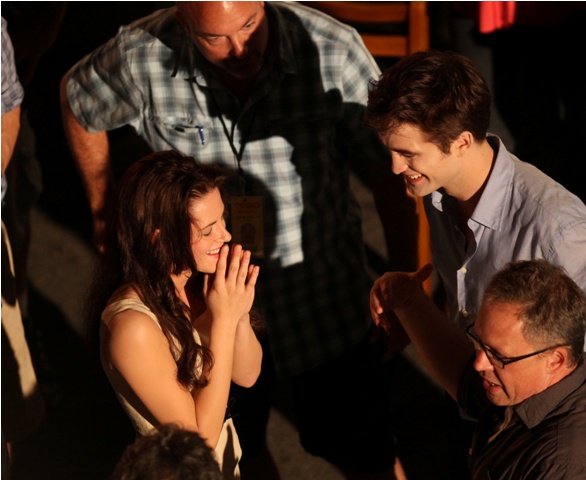 As I previously reported – click here for a refresher – the script calls for a lot of sex between their characters specifically during this part of the shoot. The way it’s written, it actually sounds kinda hot. Not like Twilight lame sh-ts hot, but normal person hot. And so the question becomes whether or not Twilight author Stephenie Meyer, a producer now on the films, whose taste is demonstrably assy, will hover around the set and tone their business down. You know.