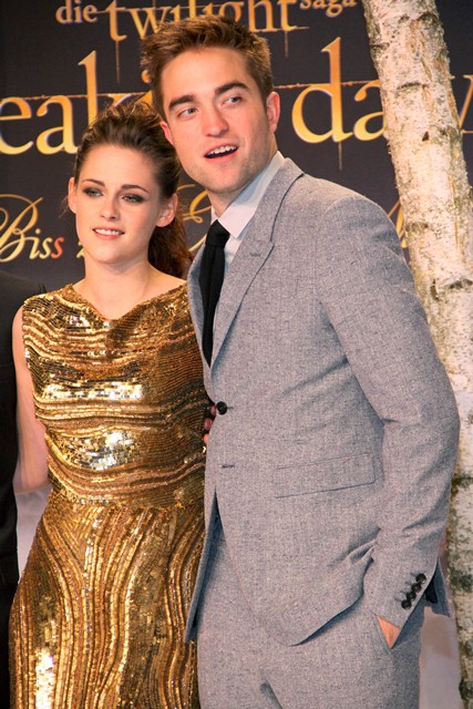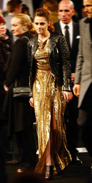 Here’s the Twilight Three in Berlin today for the German premiere. Kristen Stewart is wearing Elie Saab, a terribly unflattering gold Elie Saab. All of it is terrible. The neckline is terrible. The squiggly sequin lines are terrible, reshaping her body in the most strangely alien way -- like her head has been photoshopped onto someone else. And still worse, it’s much, much too old for her. Again, more JLO here and definitely no KStew.