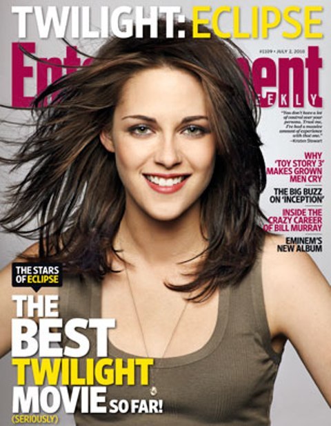 The cover of the new issue of Entertainment Weekly declares that Eclipse is the best movie in the Twilight series so far. This... um... wasn’t difficult to achieve. But as I wrote at the release of the Eclipse trailer, it looked like a campy zombie movie. Good. Apparently the cheese has been dialled down. Good. If only they had let David Slade’s original cut stand up. Because it would be even better. Having said that, I’ve no doubt Slade’s interpretation, butchered as it will likely be by Summit, will be an improvement on the sh-tness of New Moon. Especially if it this Entertainment Weekly cover delivers on its promise.