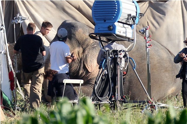 On a less controversial note, Pattinson was photographed with elephants on the set of Water for Elephants looking so, SO, SO pretty. Hooker, never EVER grow your hair again. Also attached, Stewart working it last night at the Love Ranch premiere. Hooker, never EVER grow a ponytail weave again.