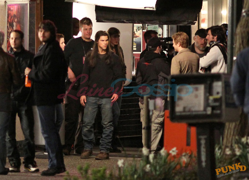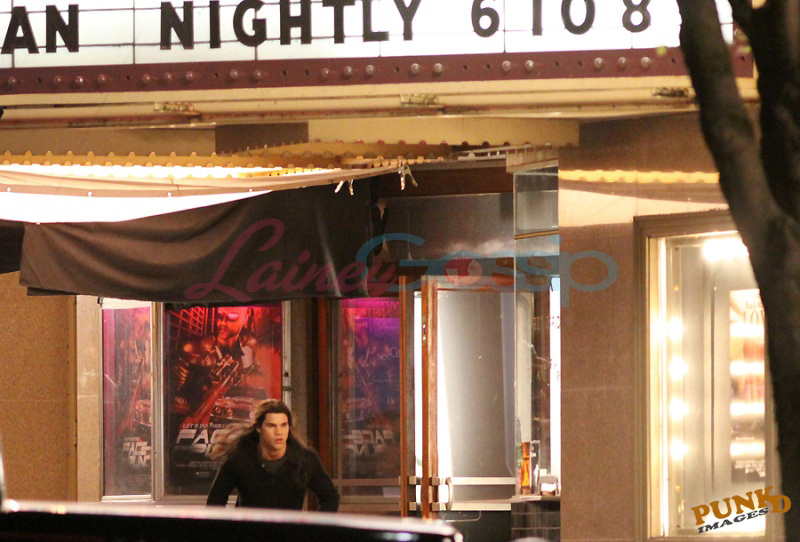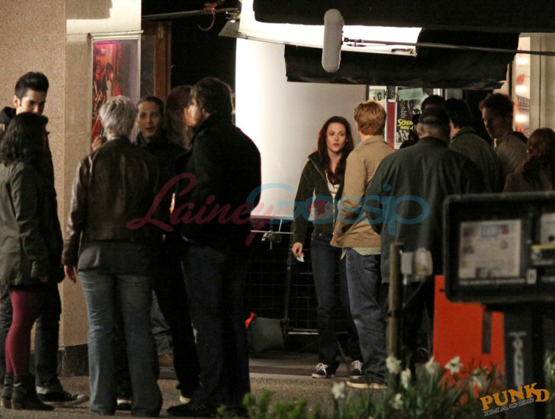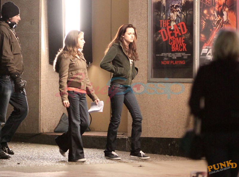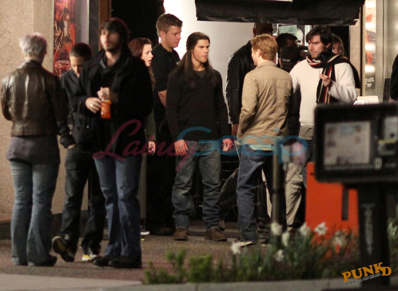 As I first reported earlier this week, they shot more theatre scenes last night for New Moon with Kristen Stewart, Taylor Lautner, and Anna Kendrick.