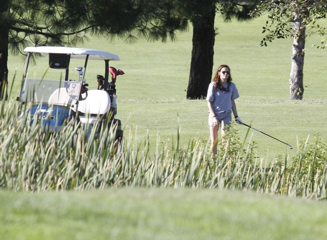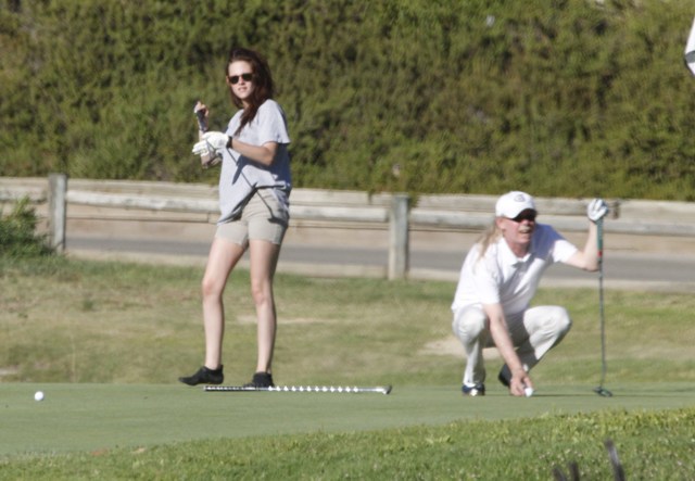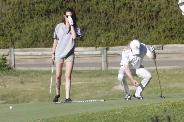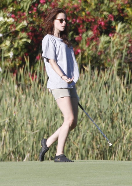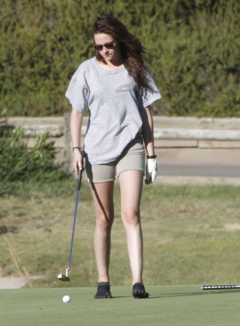 She’s Kristen Stewart! She will never conform! She cannot be contained! She wears chucks on the red carpet and five toe gloves on the fairway! This is how they play golf Malibu styles!