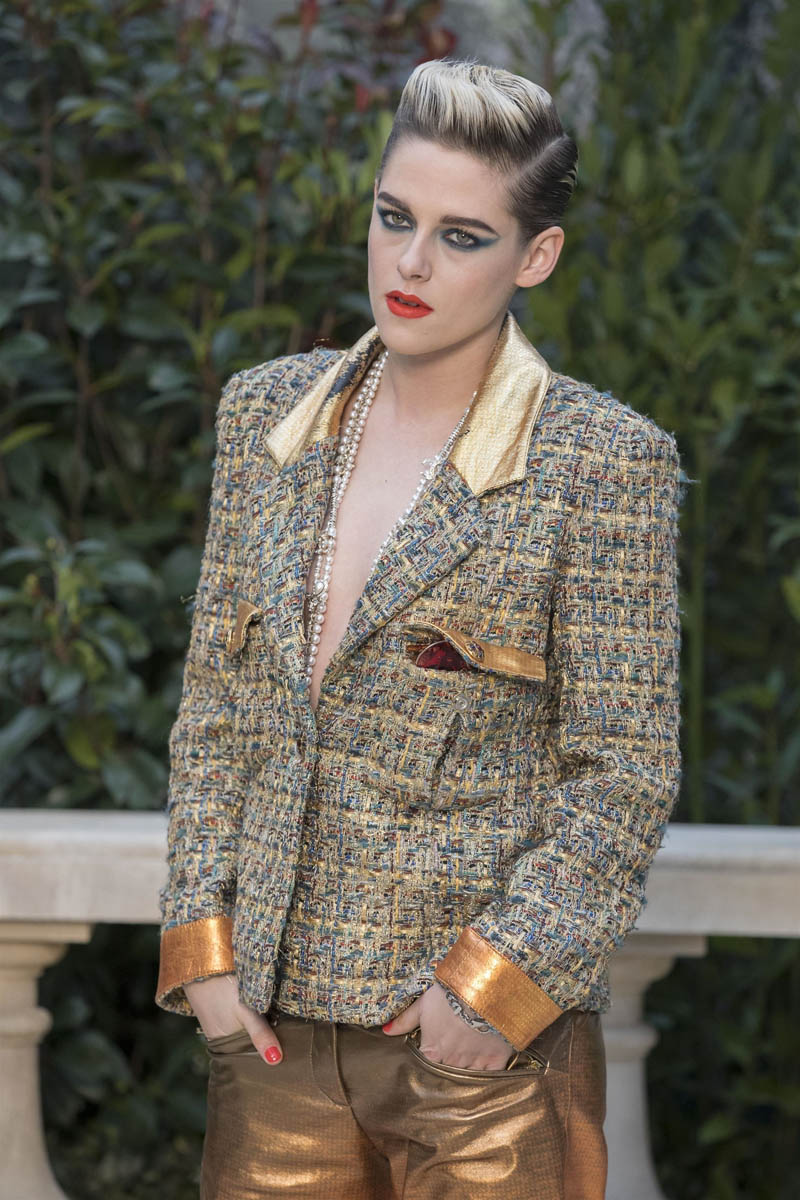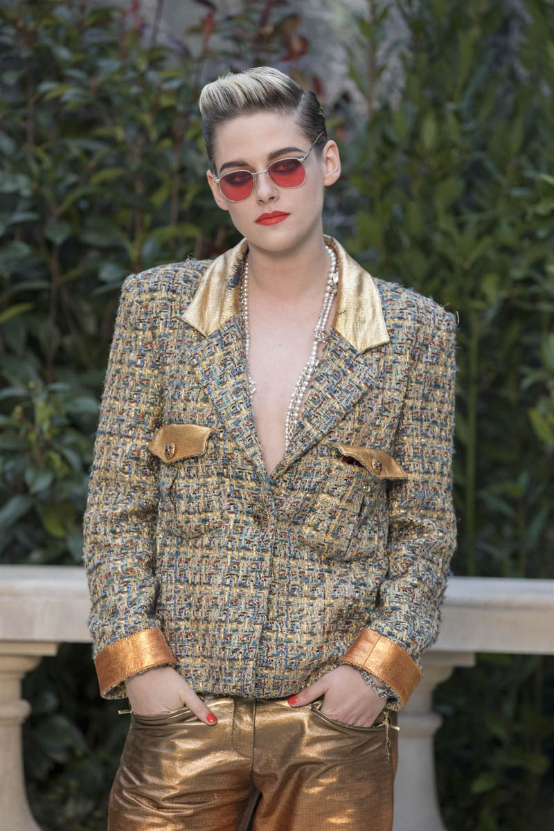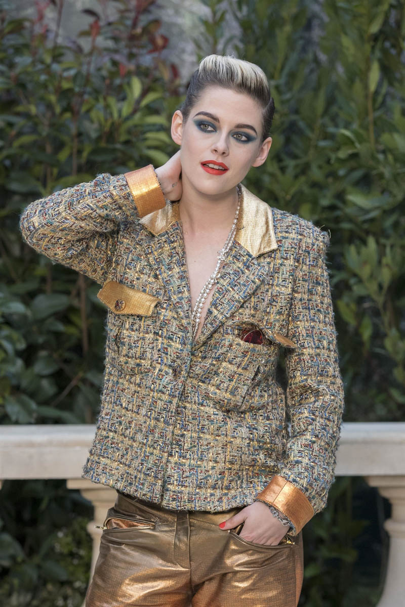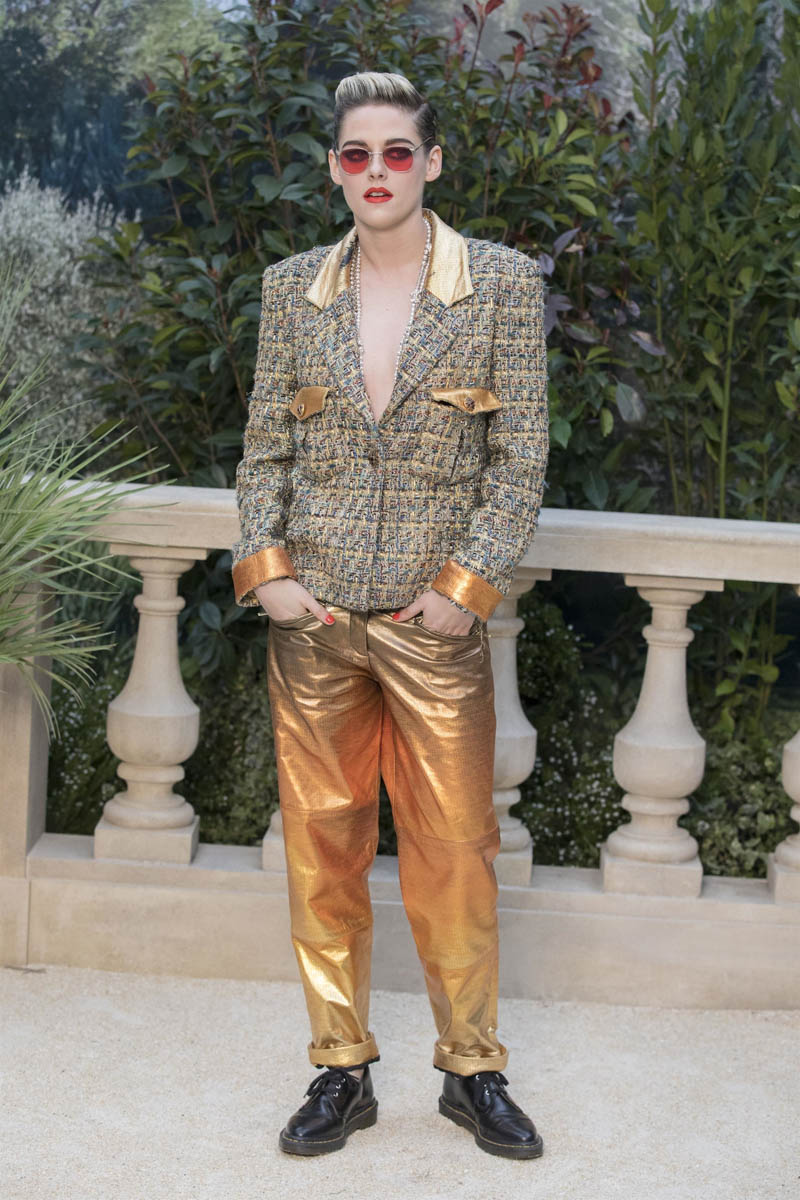 The Chanel Haute Couture show happened yesterday in Paris. Kristen Stewart, one of the brand’s ambassadors, was there and for the first time in a long time, I’m not super excited about her in the clothes. And it’s not the clothes themselves – I quite like this combination – but the fit of them on her. It’s the oversizing of both the jacket and the pants, maybe? Like perhaps it should have been one or the other? Also the rolling of the pants seems unpolished here, in that material. And while I will always f-ck with an oxford, here, in combination with all of the rest of it, I don’t think it’s working.