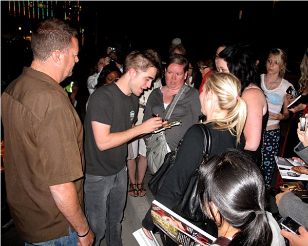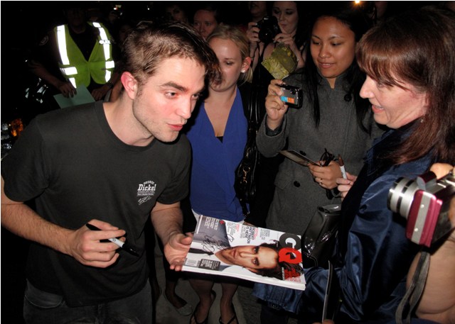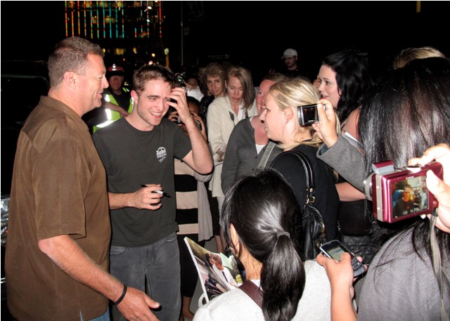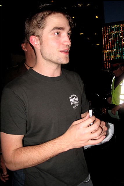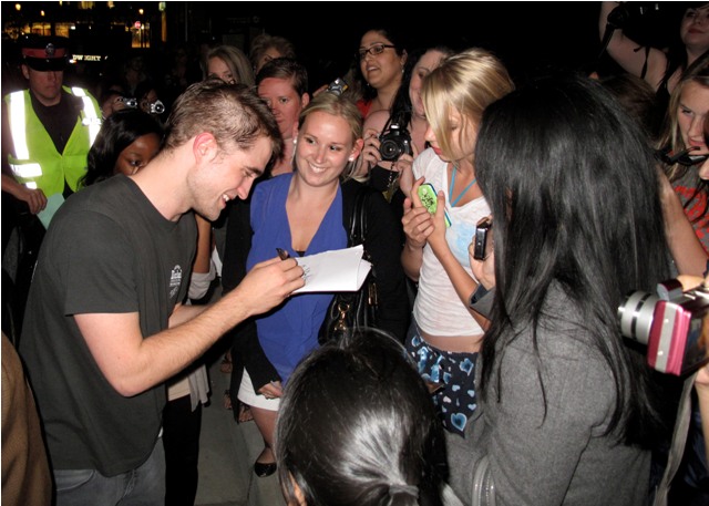 Robert Pattinson was in Toronto last night shooting until 5am. When he finished he spent several minutes signing autographs for the lady fans who’d been waiting for him. Until 5am.