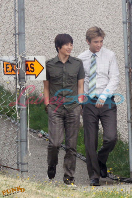 On Friday it was Twilight graduation and a first look at Kristen Stewart’s Bella hair. As I reported a couple of weeks ago, she did not want to have extensions added on to her Joan Jett hair. Love her for that. But this wig looks busted. And Jackson Rathbone is the bowlegged hotness. Damn.