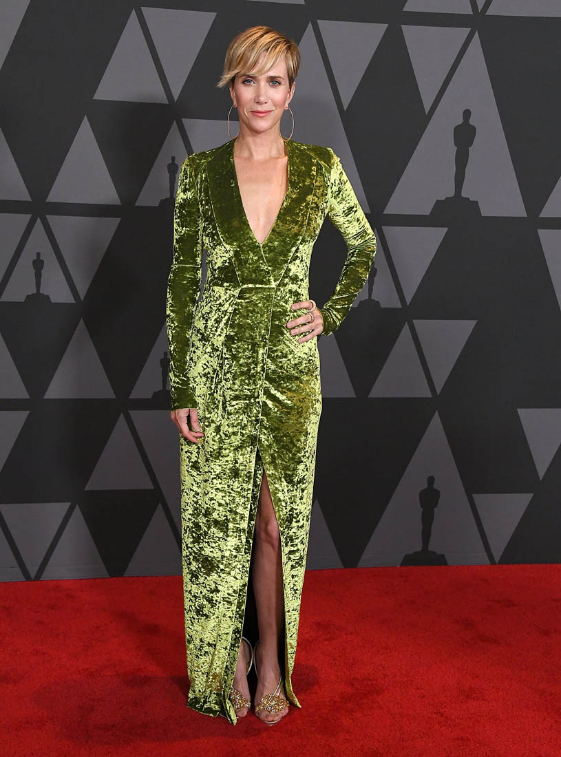 Andrea Riseborough’s beautiful green gown was my favourite at the Governors Awards. Kristen Wiig’s green crushed velvet…