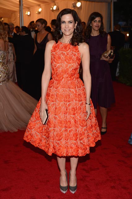 What is that lace? What is that material? What is this effort? You don’t want to go? Don’t go. Because you know the Met Gala is more than just a lazy orange mid-calf cocktail dress with daytime shoes. Kristen Wiig is so much more than what she gives us on carpets. It’s in there, God I know it’s in there. But why does it hide?