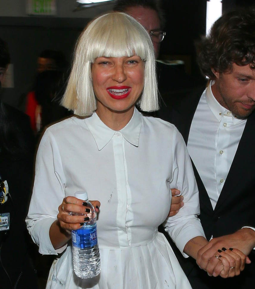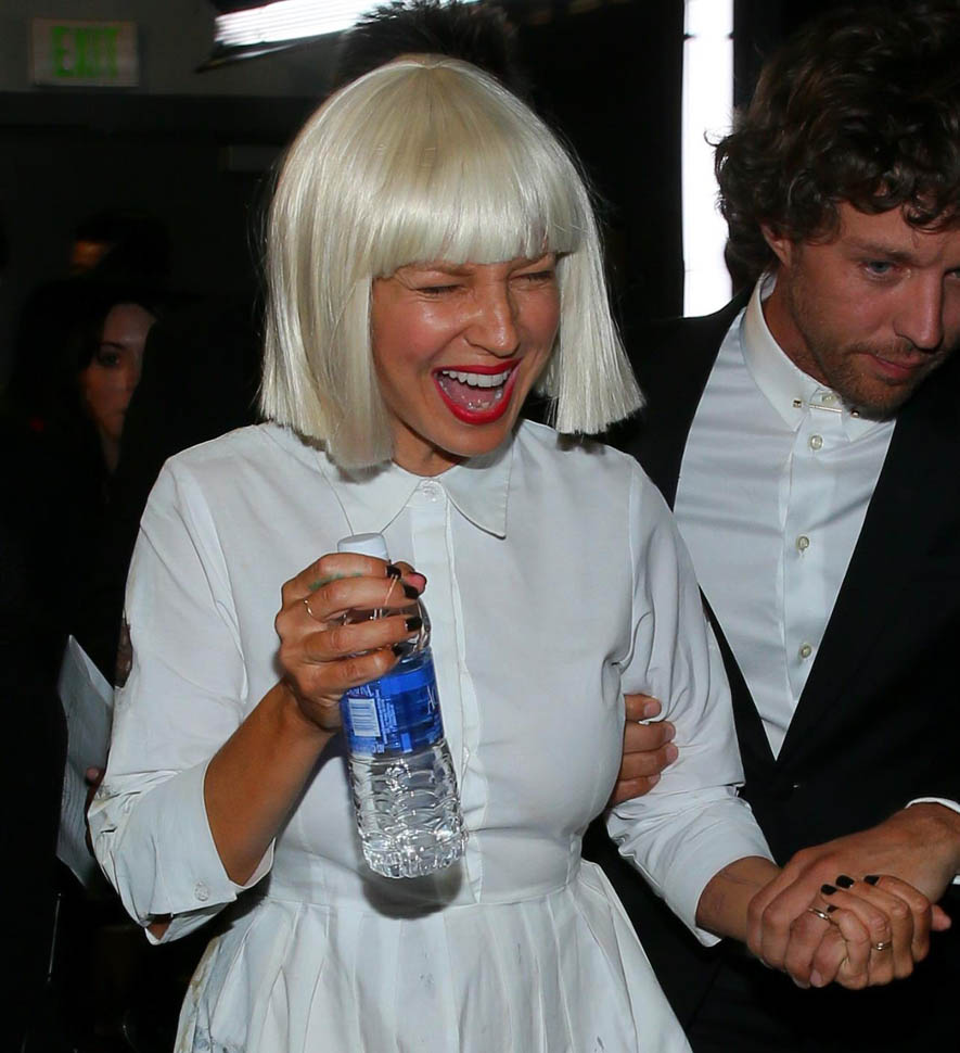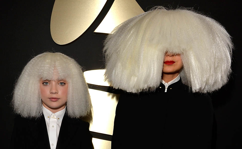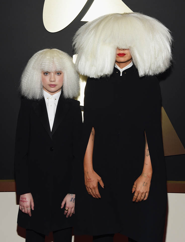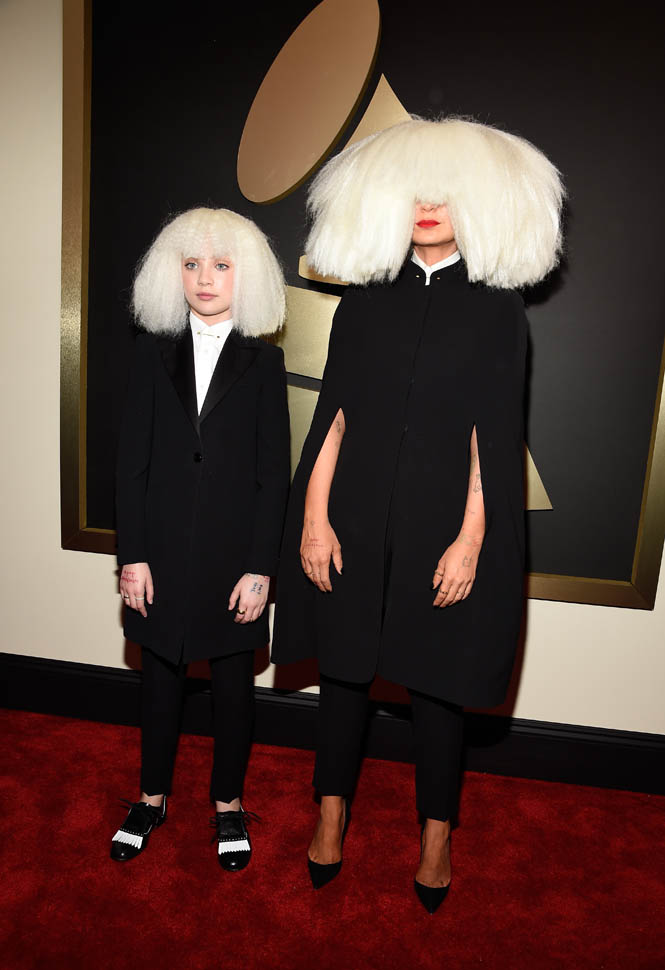 Sia’s red carpet look, however, is totally my jam. It’s the overall aesthetic, the combination of Sia side by side with Maddie Ziegler – the cape, the long suit jacket, the shoes, the hands arranged exactly, just so. It makes Gaga look like amateur hour, non?