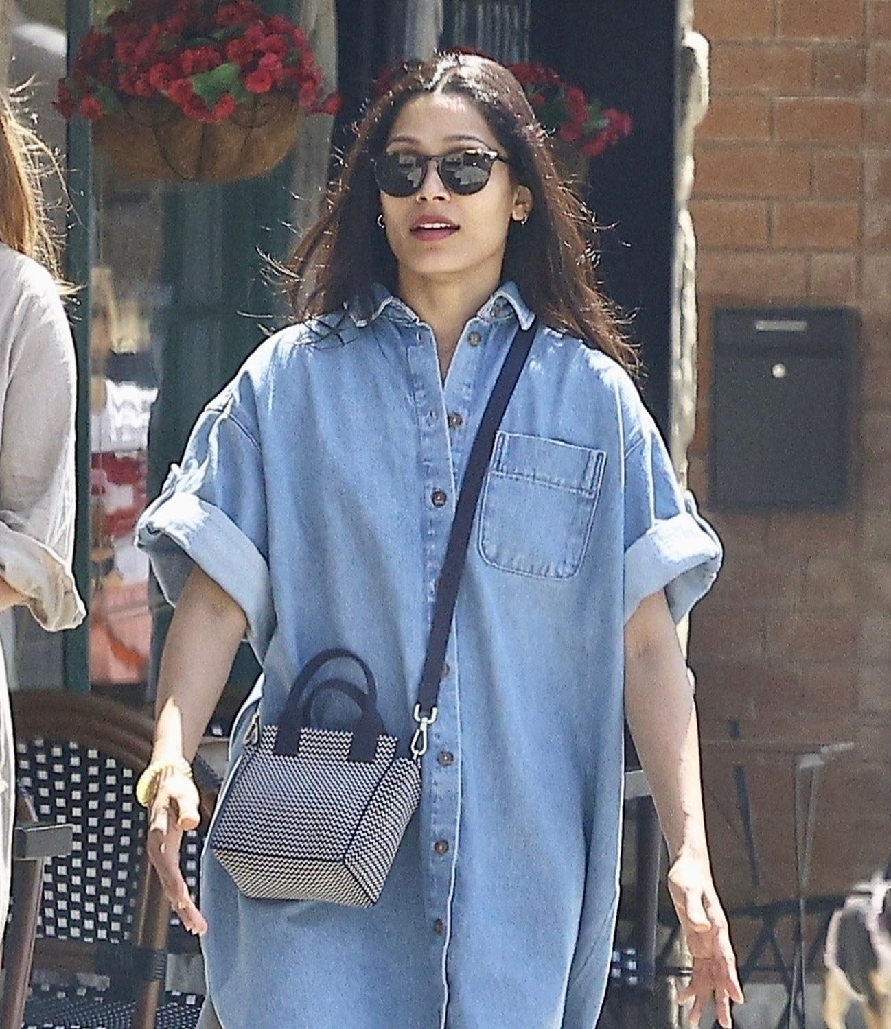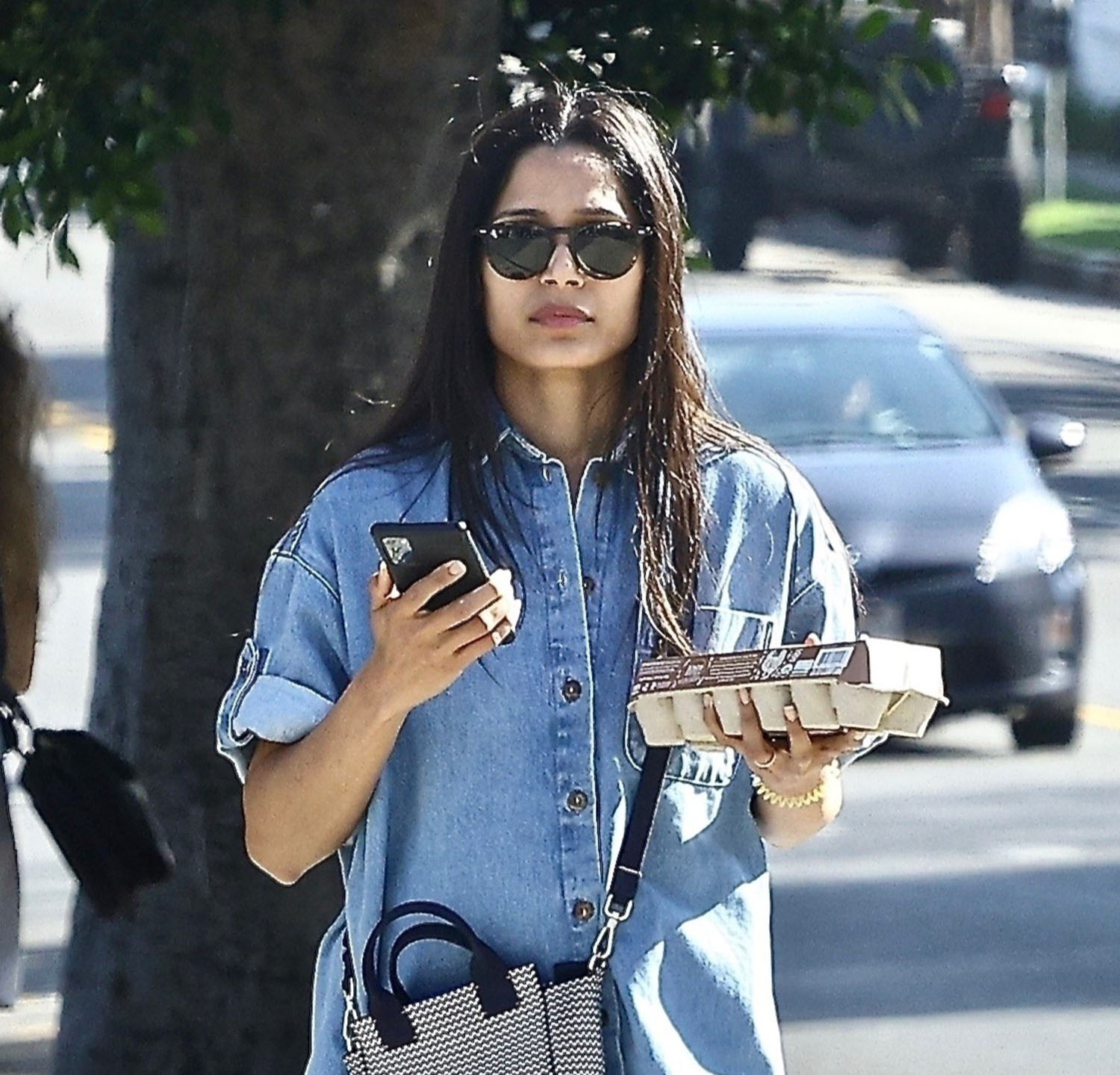 Attached - ScarJo at the launch of Outset at Nordstrom yesterday, and Frida Pinto in LA with a friend.