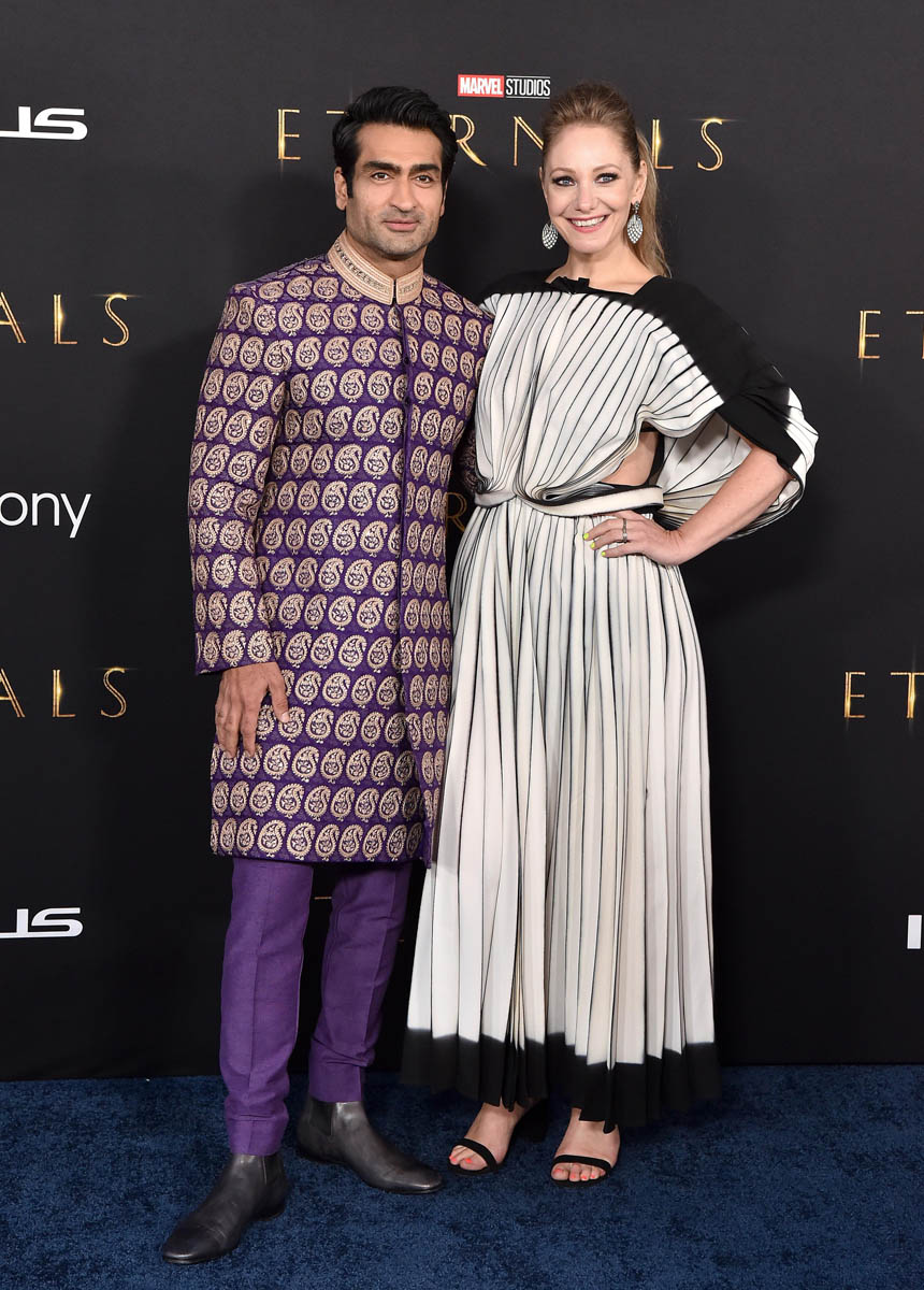 The Hollywood premiere of Marvel’s Eternals was last night – one of the biggest premieres we’ve seen since the start of the pandemic – and we’ll have coverage of that throughout the morning but let’s kick it off with Kumail Nanjiani who got an assist from his mother, Shabana, for his look. Kumail tells The Hollywood Reporter that: