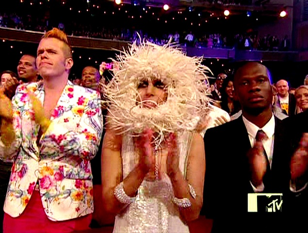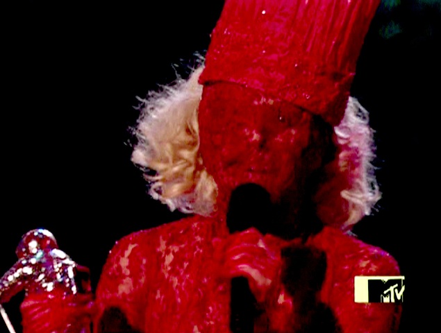 The final outfit Lady Gaga pulled out for the night was that white Christmas wreath she had wrapped around her head. Brilliance. Merry Christmas, indeed!