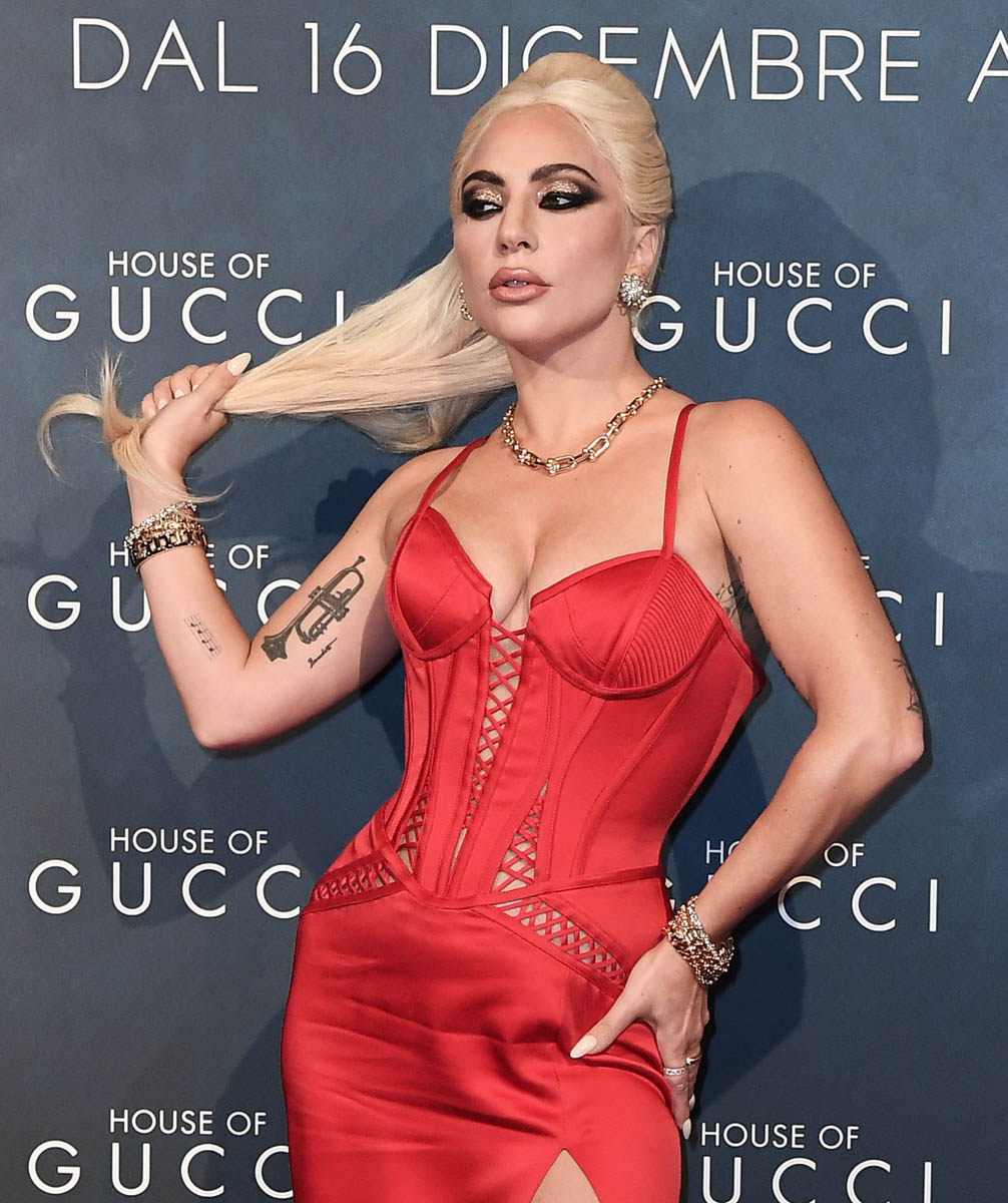 Without even looking for a dress ID, I knew this was a Versace (or, as Nomi Malone would say, Versayce.) This is Lady Gaga at the Milan photo call for House of Gucci, rocking red Versace bustier gown and diva makeup and diva hair. Diva is very much Gaga’s Gucci vibe, from her performance to her press. I appreciate how Gaga turns the press tour into part of the performance. For A Star is Born, she was the ingenue, as befitting Ally Maine, and for House of Gucci she is all big hair and cat eyes and the gaudy side of haute couture. More stars should indulge press tours this way, it’s just more fun for everyone. Remember when stars WEREN’T just like us? Gaga does.