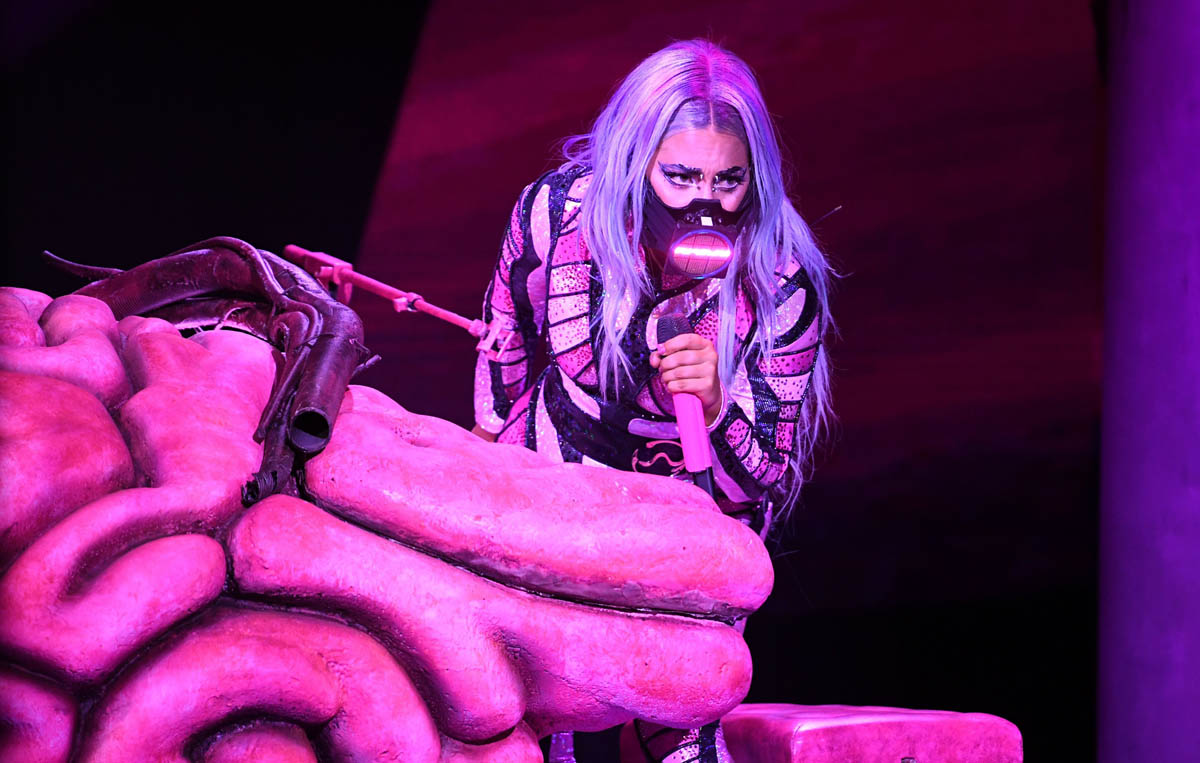 So in these times, when masks are our most vital accessory, of course it had to be Gaga to bring it with the mask energy…because on her, after all these years of seeing her in all her costuming, Gaga taking the stage in mask after mask, not showing her face once, actually seemed…