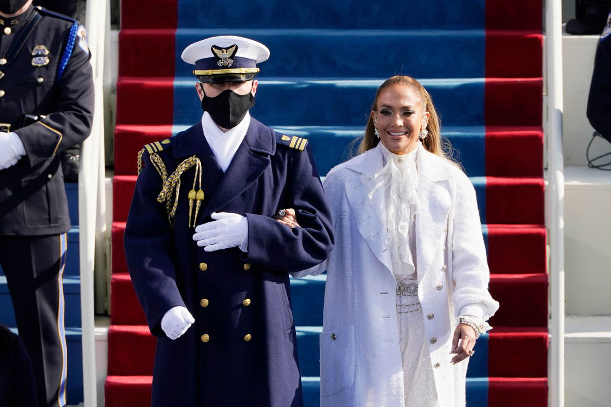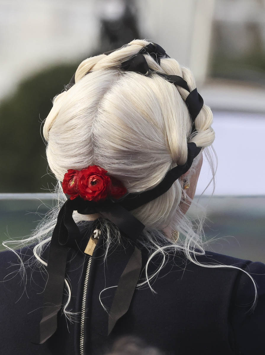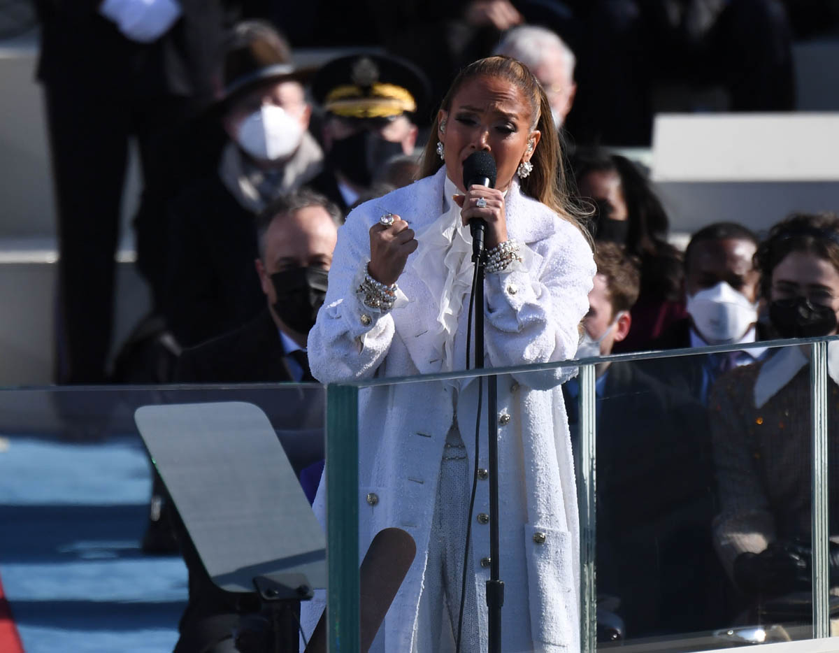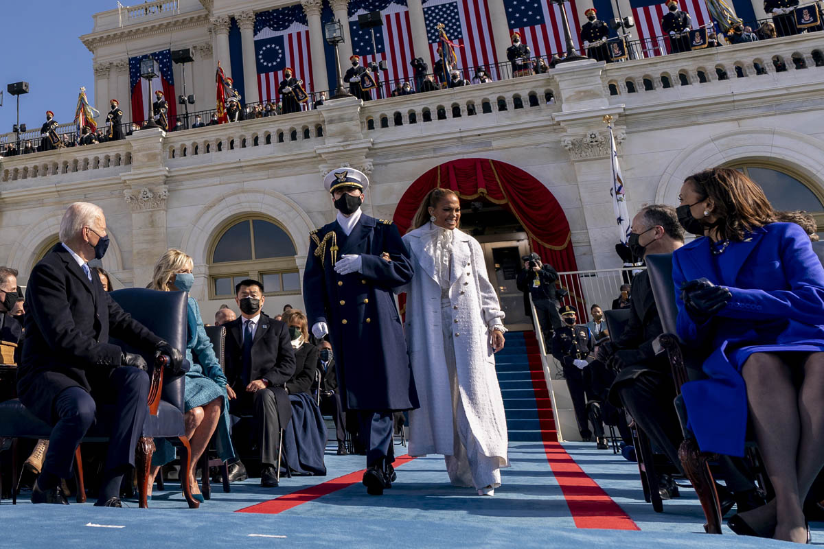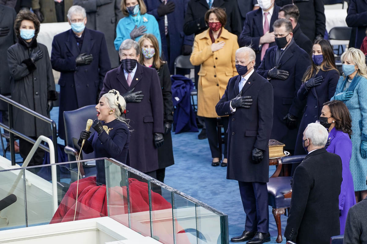 So when Gaga walked out in all her Gaga-ness, with the hair and the billowing skirt and the gigantic dove pinned on her heart, the olive branch in her ears, and when JLo descended the steps in sparkling white, as if to signify a new beginning, I was happy to see it. And happy to hear it, for the most part. I thought Gaga’s version of “The Star Spangled Banner” was beautiful and of course, she put all her theatricality into it with a gold microphone – especially in the moment she turned to the flag during “our flag was still theeeeerrrrrrre”, a part in the song that’s particularly poignant now considering what happened when Trump insurgents attacked the Capitol just two weeks ago: