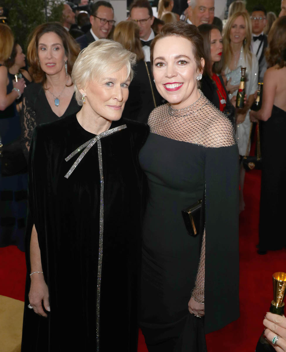 Early on in the season, like even as far back as Cannes, Glenn Close was the prediction. Glenn has steadily lost momentum. No one’s been talking about her in the last couple of months. She was in as a nominee, sure, but most of the conversation was around Gaga and Olivia Colman (who looked gorgeous in that chain mail black dress) – and at the Globes, with the Hollywood Foreign Press starf-ckers, Gaga is exactly the kind of star they love to f-ck. They’ve already given her an acting award – a couple of years ago, for American Horror Story. With Olivia in the Comedy/Musical category, most people were calling for it to be Gaga in the Drama category. That’s why Glenn’s win is being called a “shock”. No one was more shocked than Glenn: